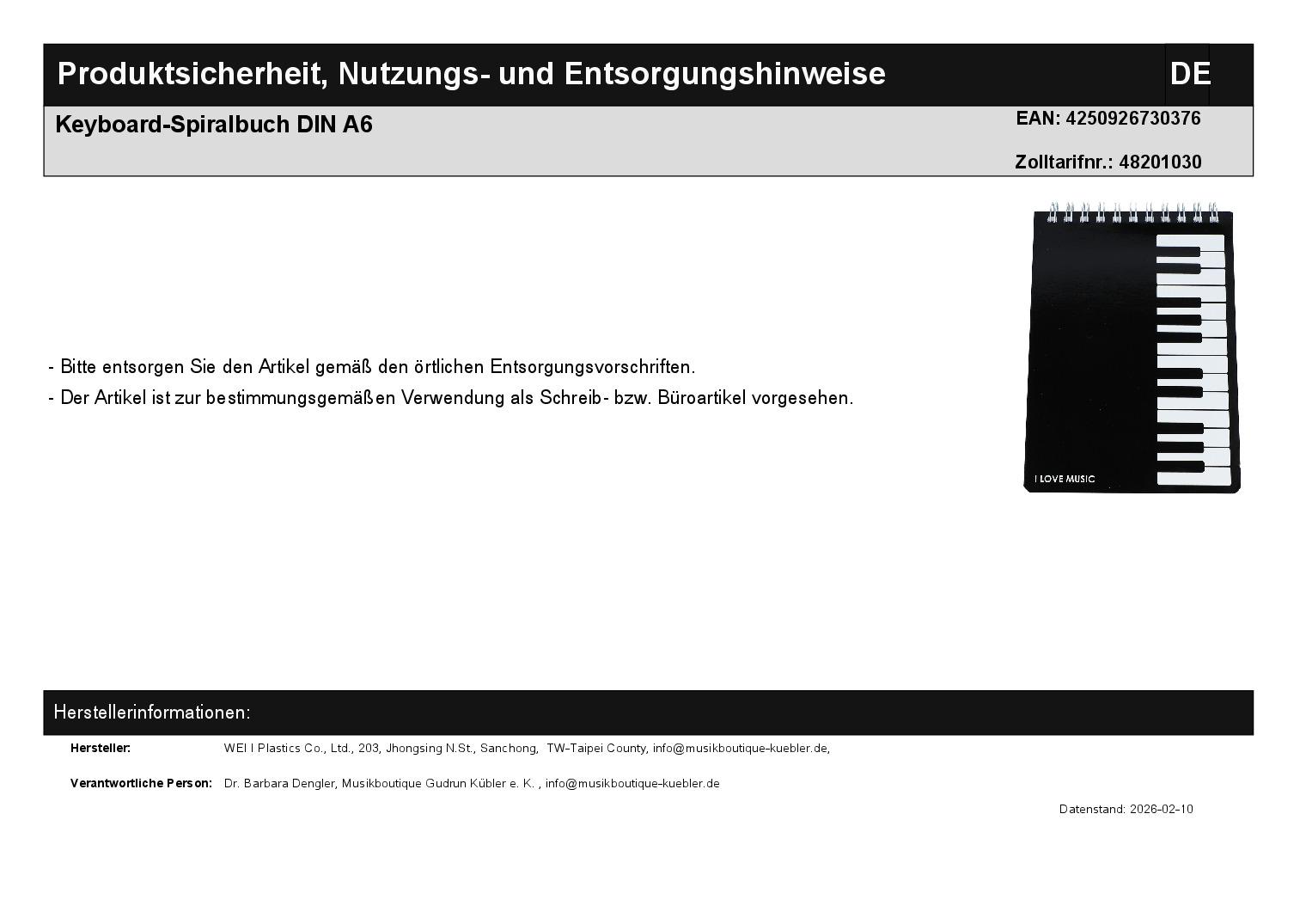 | Titel | 10 x Keyboard-Spiralbuch DIN A6 |