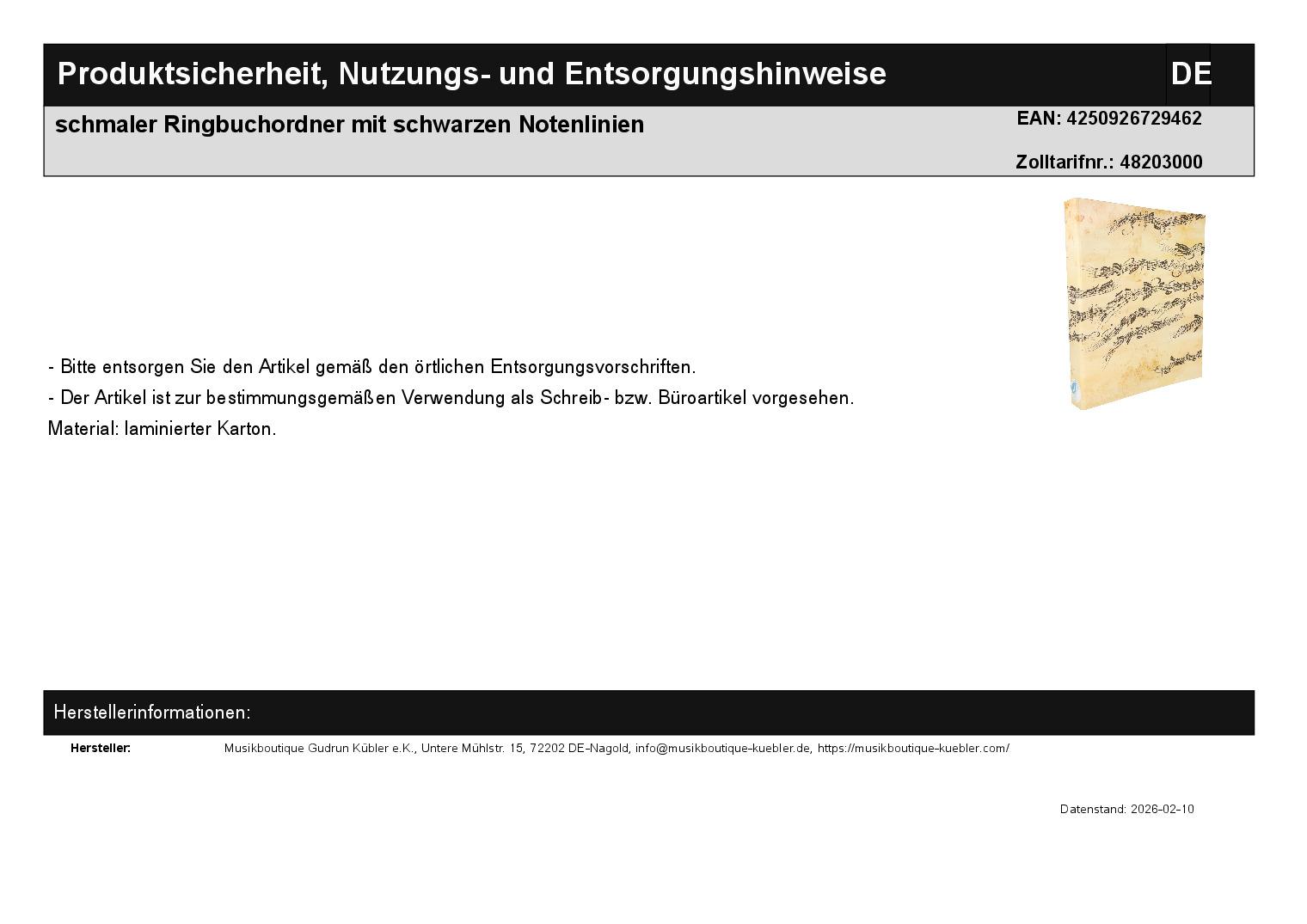 | Titel | 10 x schmaler Ringbuchordner mit schwarzen Notenlinien |