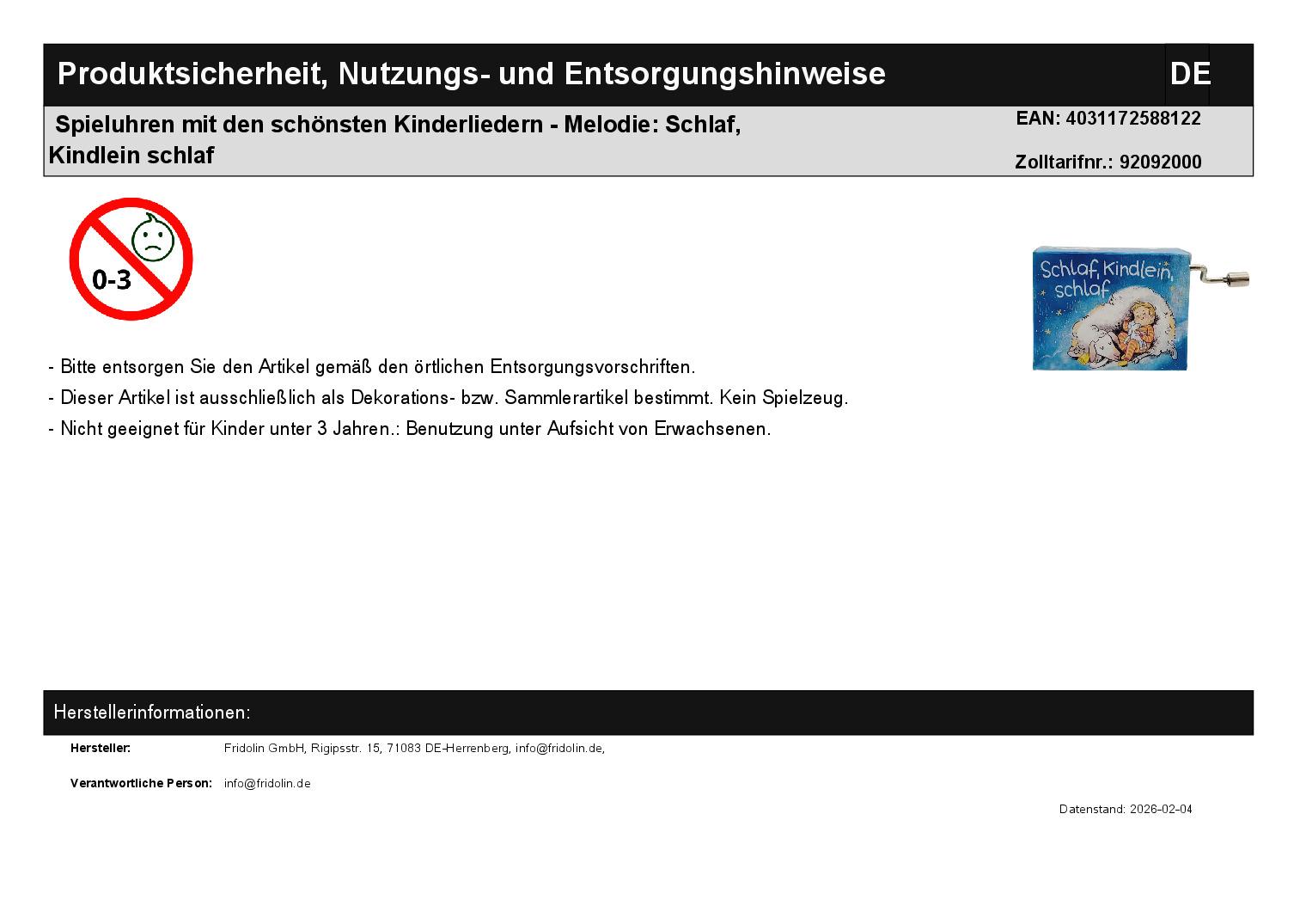 | Titel | Spieluhren mit den schönsten Kinderliedern - Melodie: Schlaf, Kindlein schlaf |