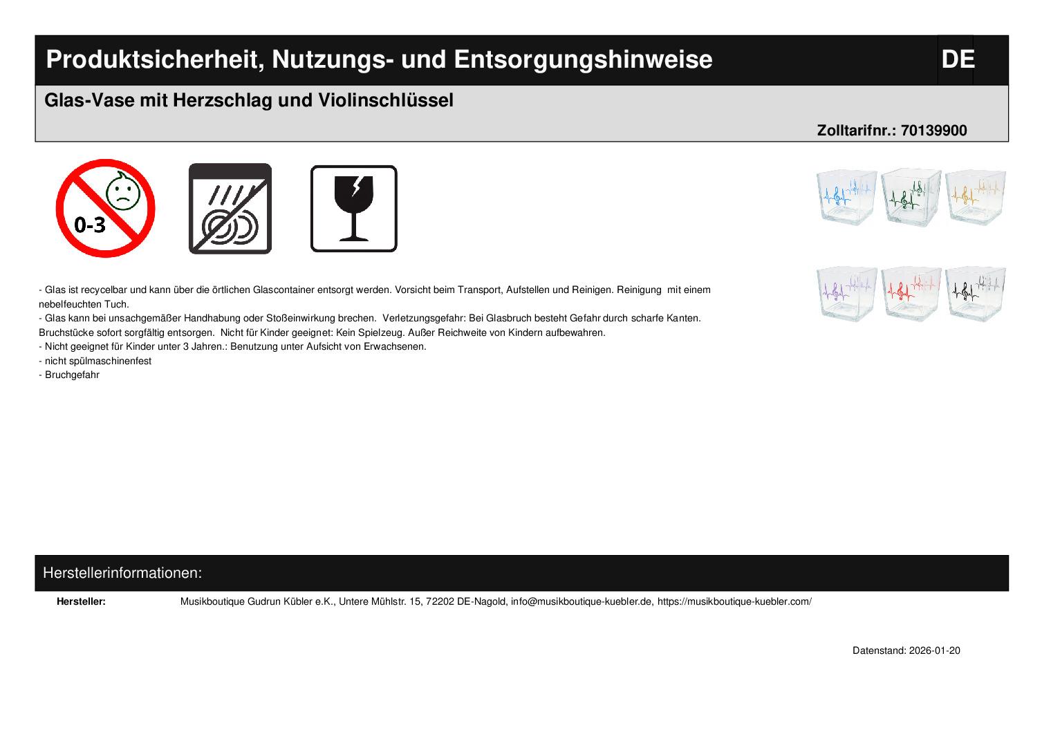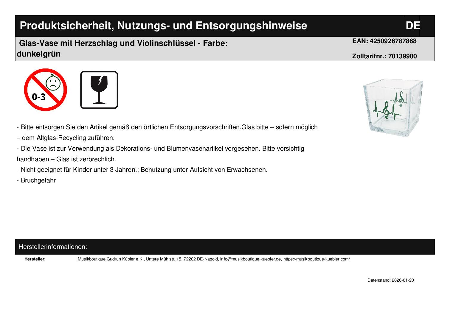 | Titel | Glas-Vase mit Herzschlag und Violinschlüssel |