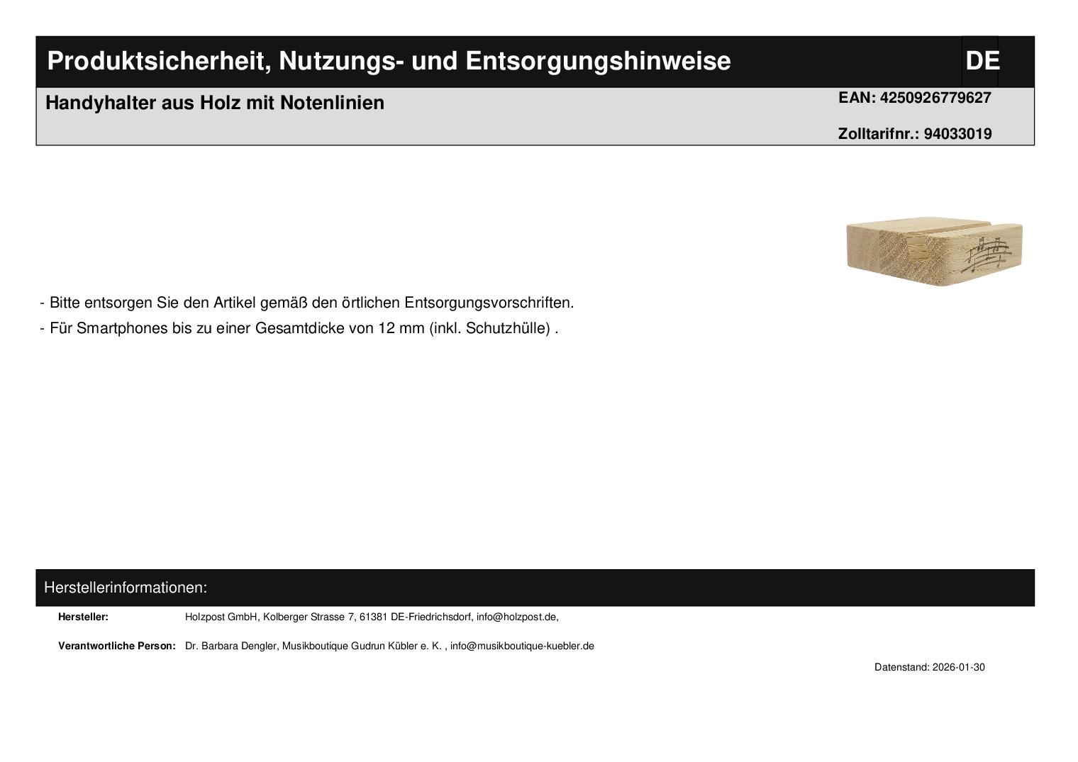| Titel | Handyhalter aus Holz mit Notenlinien |