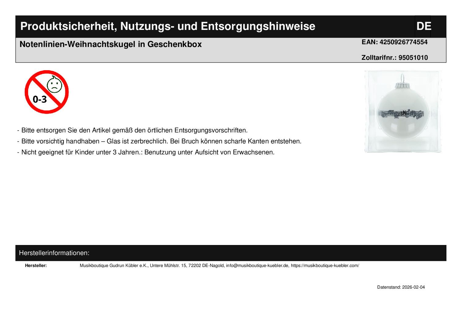 | Titel | Notenlinien-Weihnachtskugel in Geschenkbox |