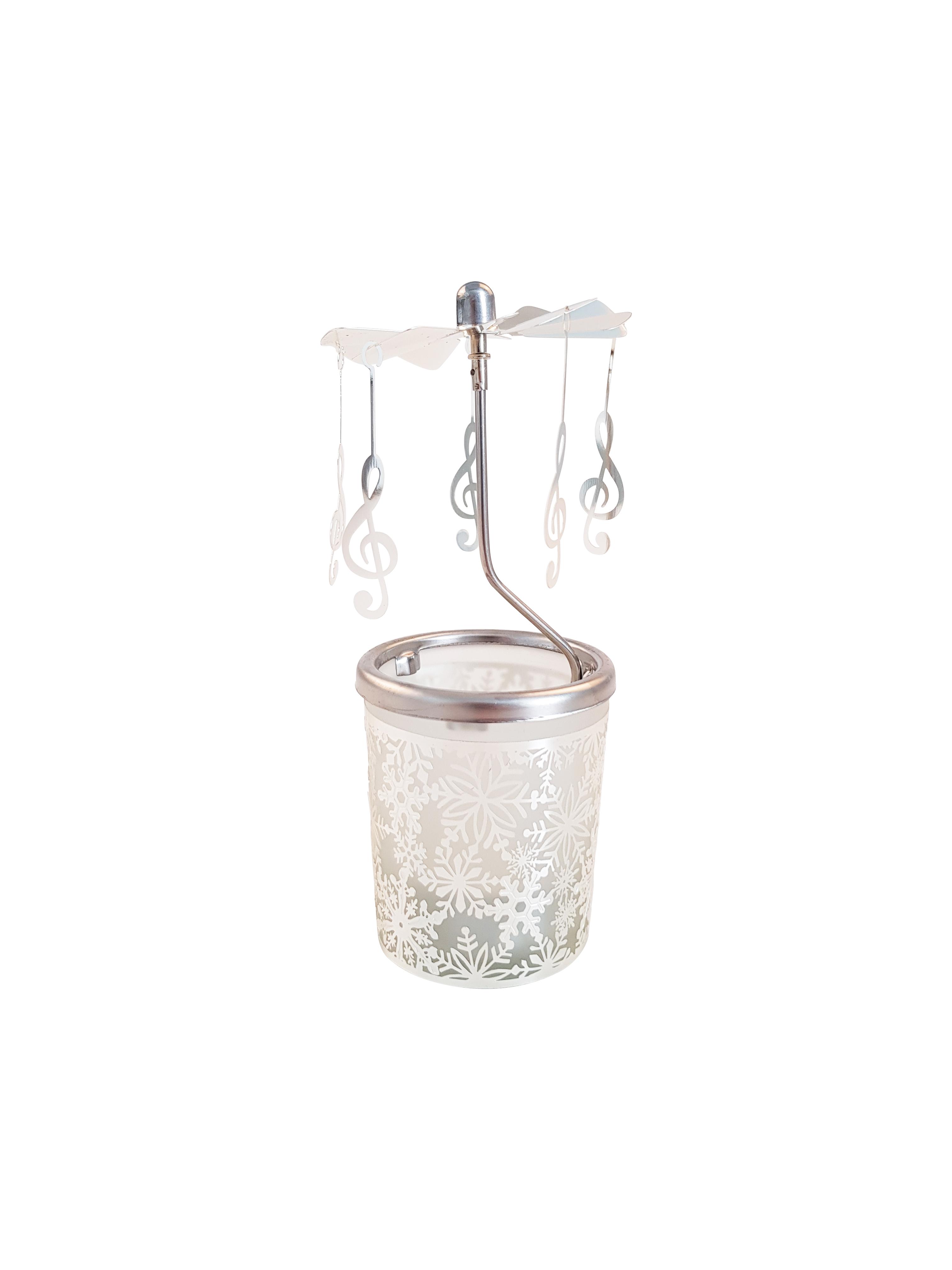 Windlicht Glas-Karussell mit Violinschlüssel- und Schneeflocke-Anhänger