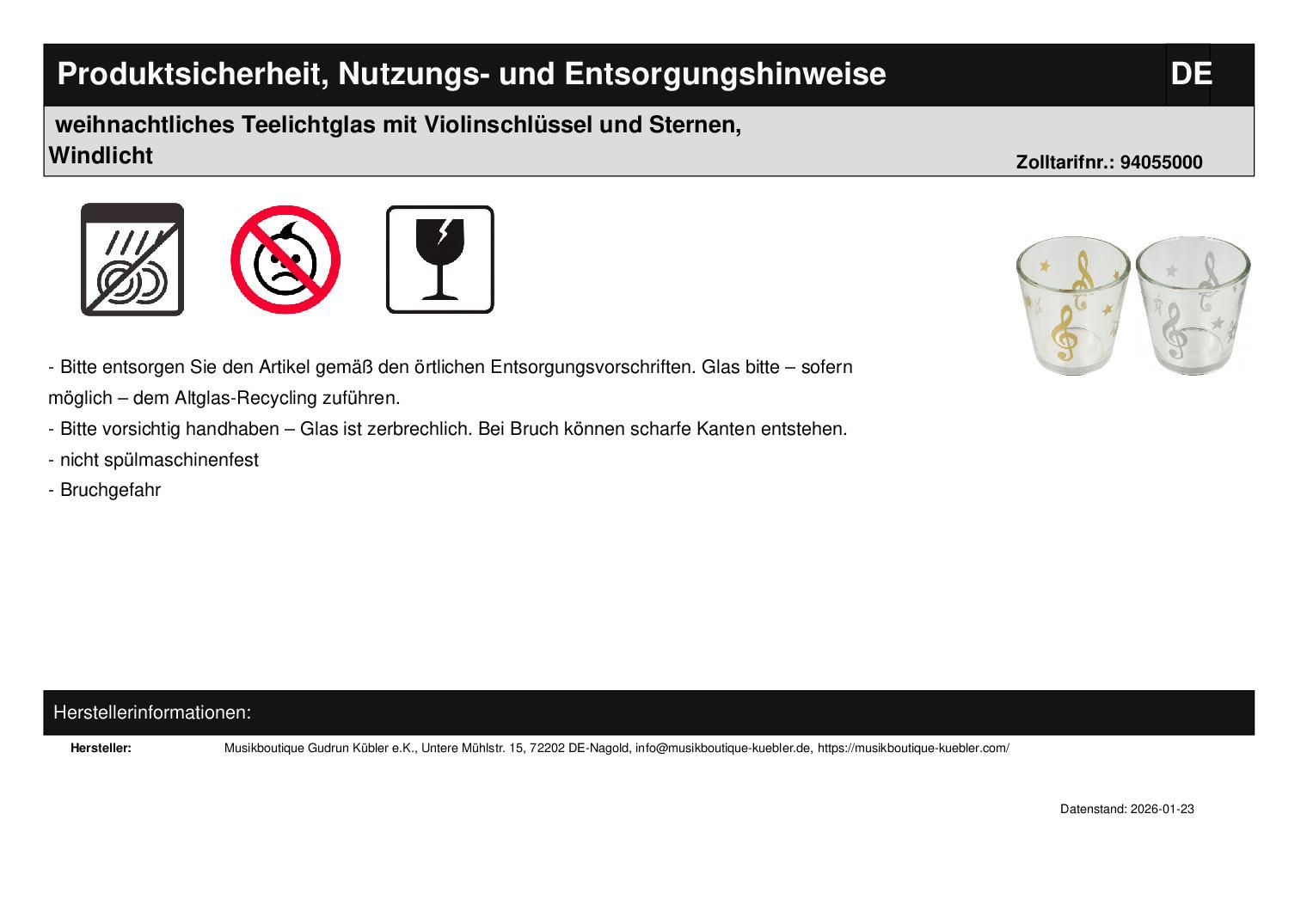 | Titel | weihnachtliches Teelichtglas mit Violinschlüssel und Sternen, Windlicht |