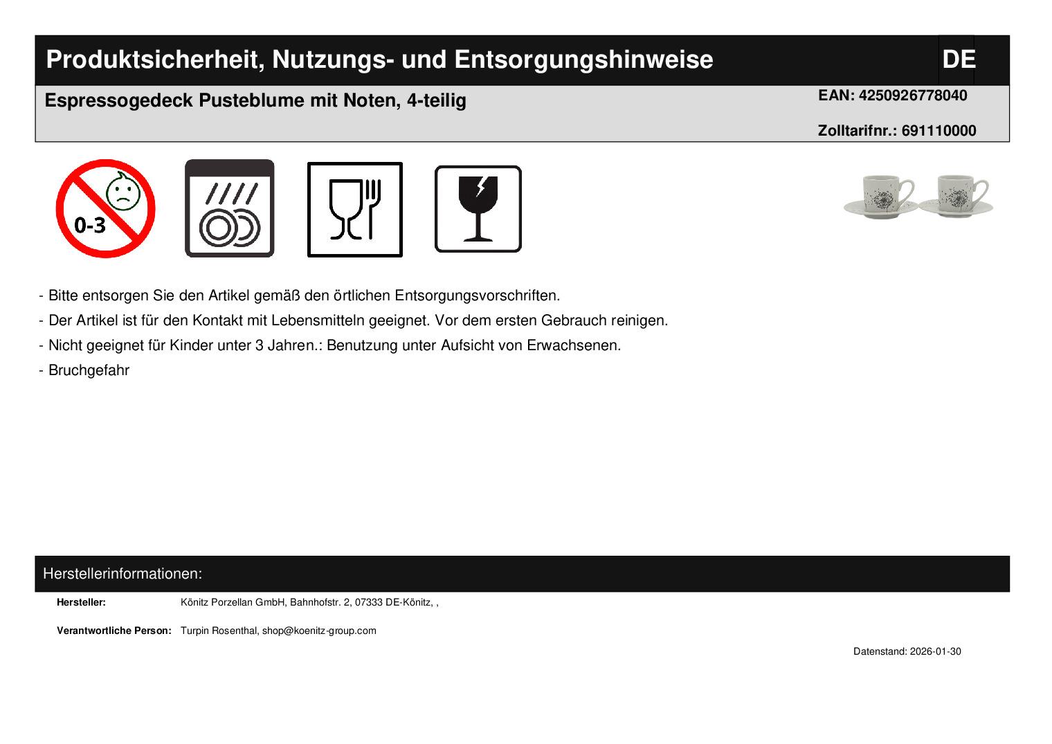 | Titel | Espressogedeck Pusteblume mit Noten, 4-teilig |