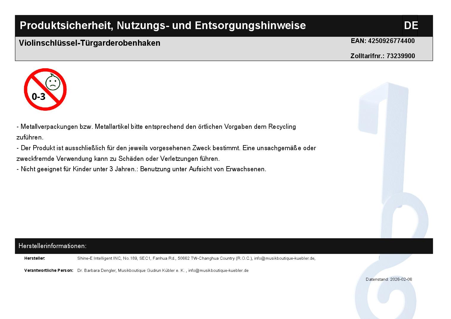| Titel | Violinschlüssel-Türgarderobenhaken |