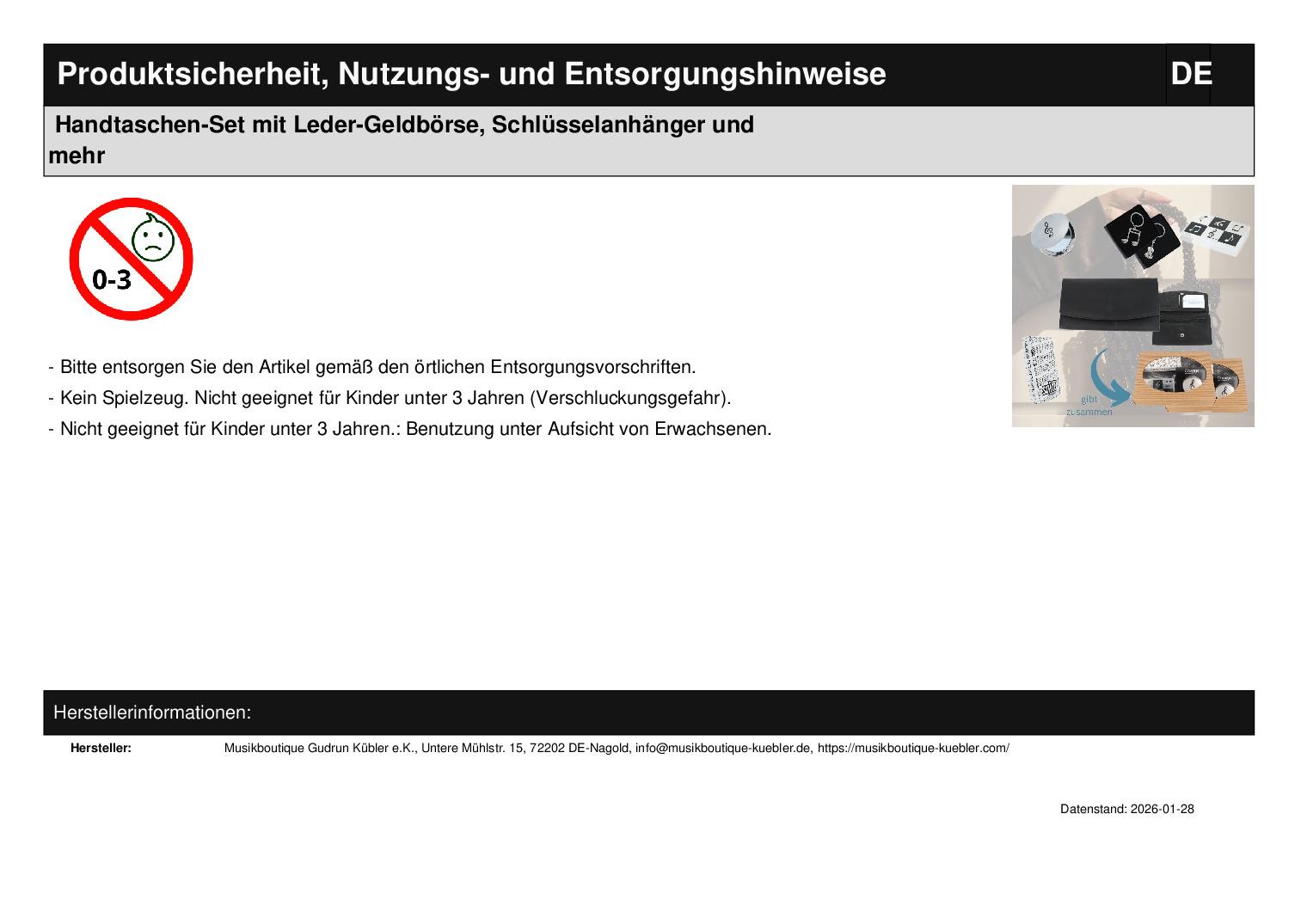 | Titel | Handtaschen-Set mit Leder-Geldbörse, Schlüsselanhänger und mehr |