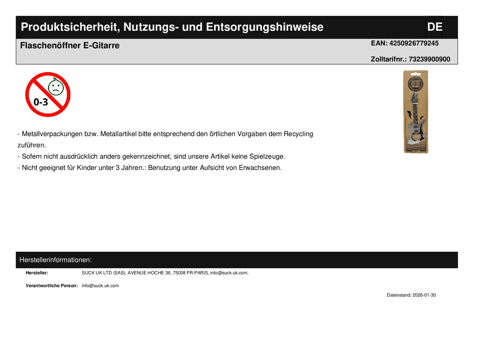 | Titel | Flaschenöffner E-Gitarre |