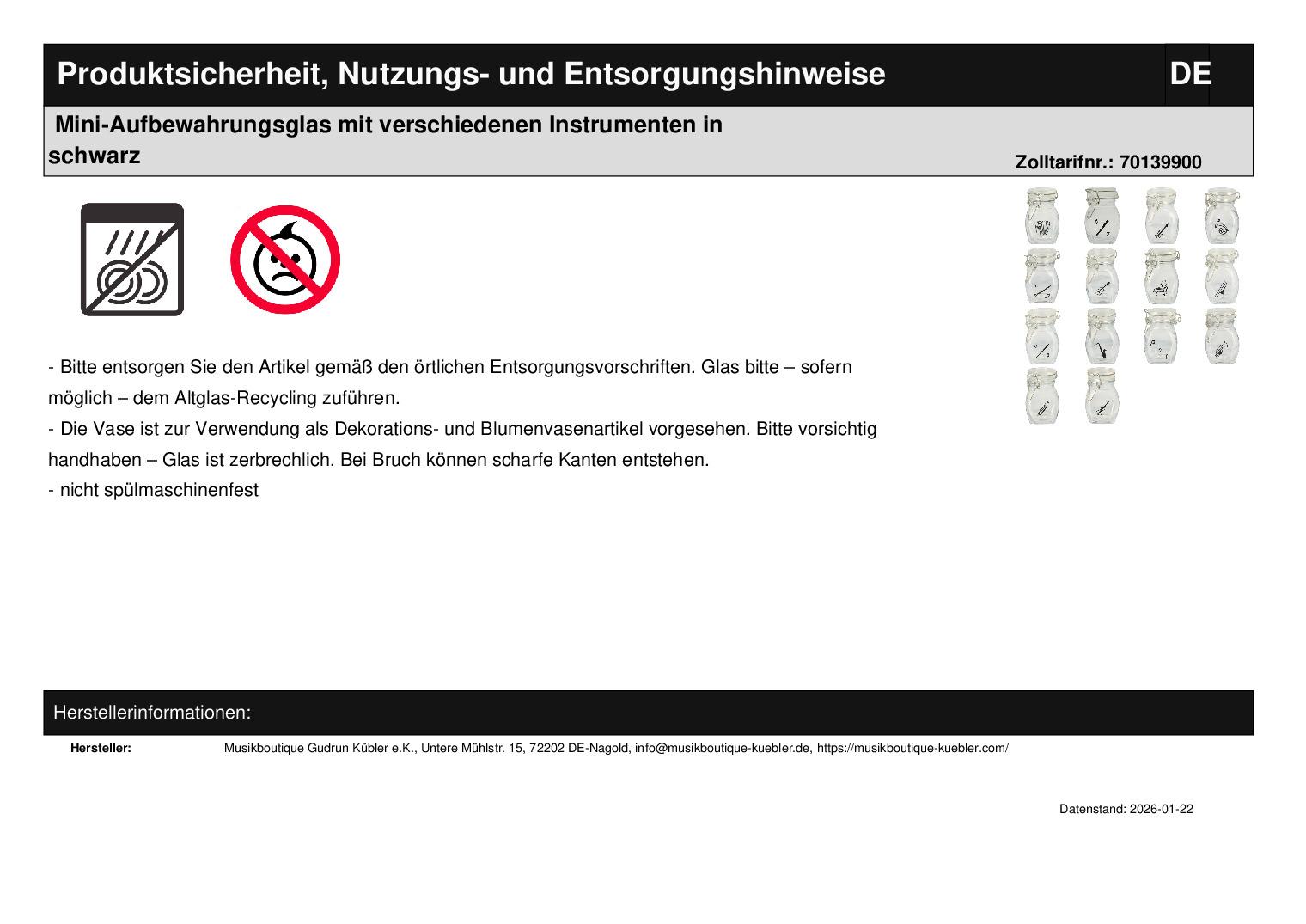 | Titel | Mini-Aufbewahrungsglas mit verschiedenen Instrumenten in schwarz |