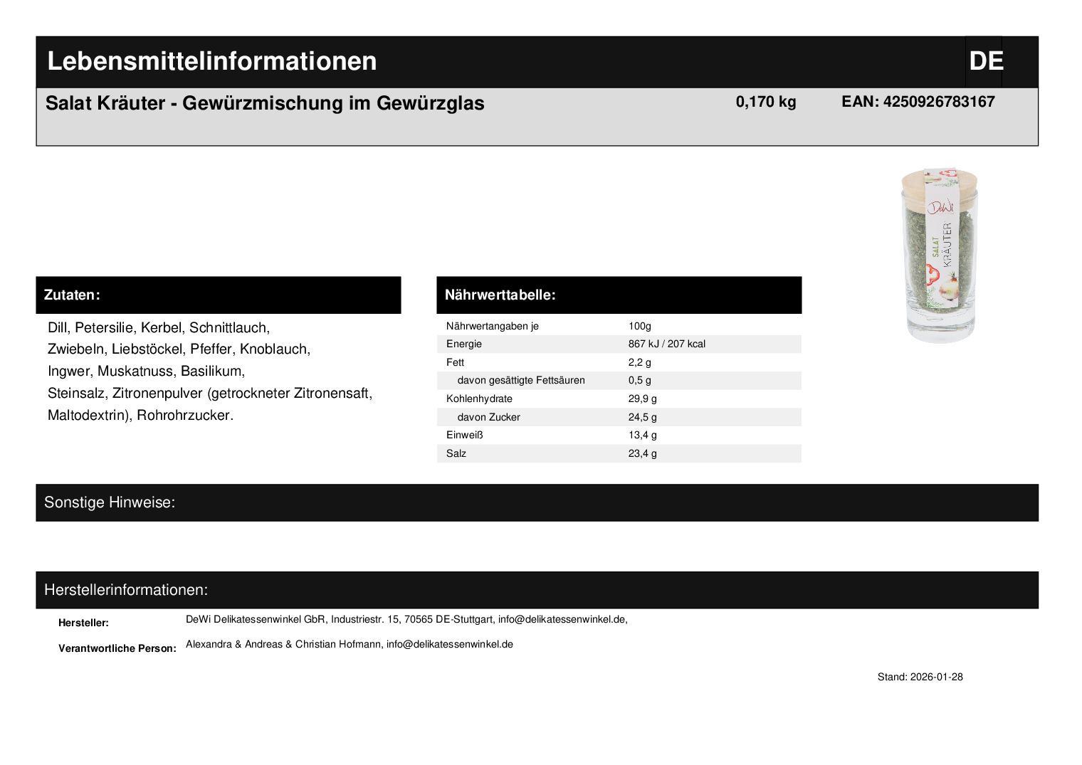 1 x Salat-Kräuter-Gewürzmischung im Gewürzglas (Inhalt 18g)