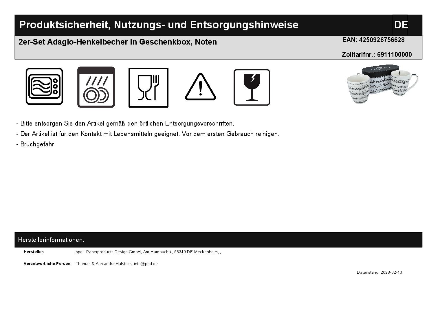 | Titel | 2er-Set Adagio-Henkelbecher in Geschenkbox, Noten |