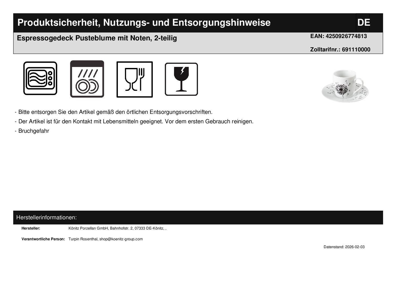 | Hersteller / Marke | Könitz Porzellan GmbH |