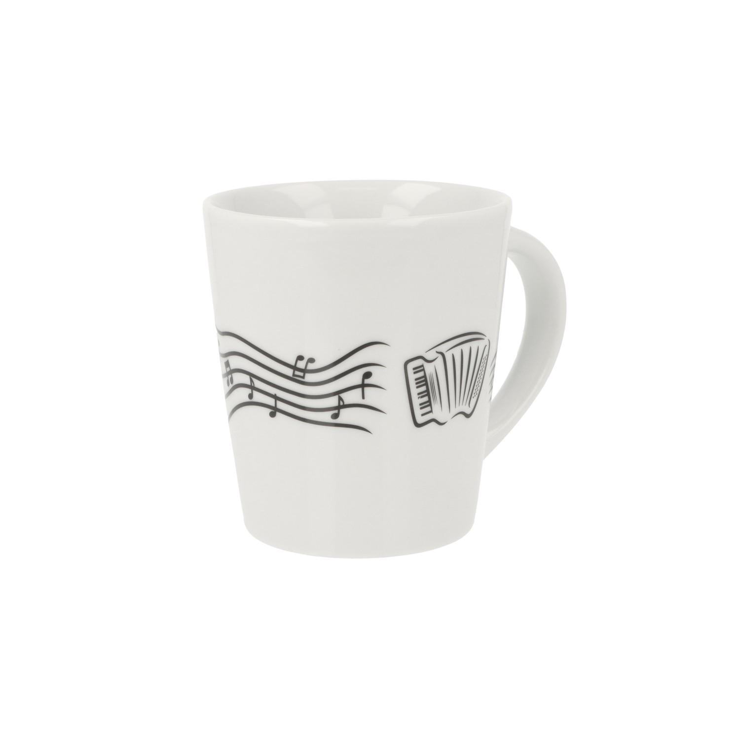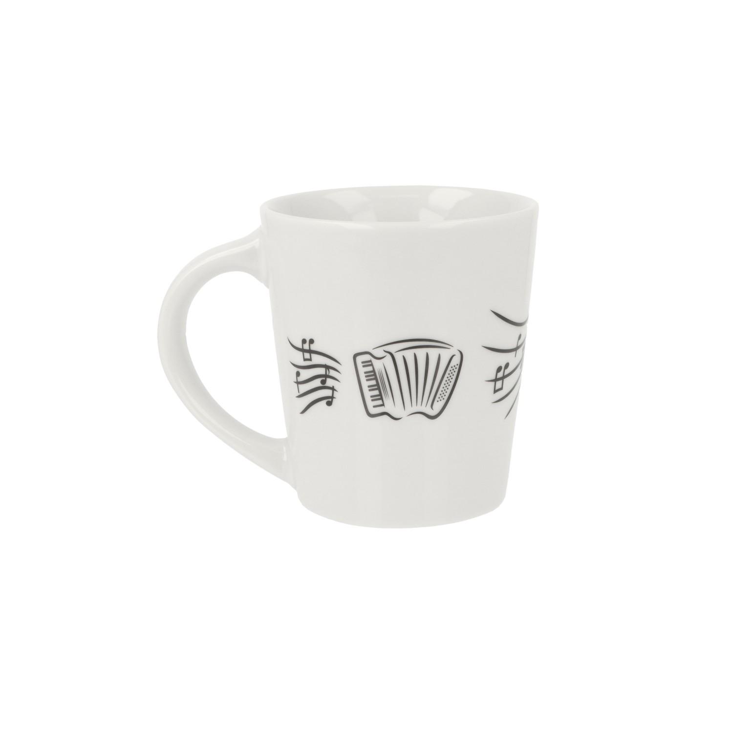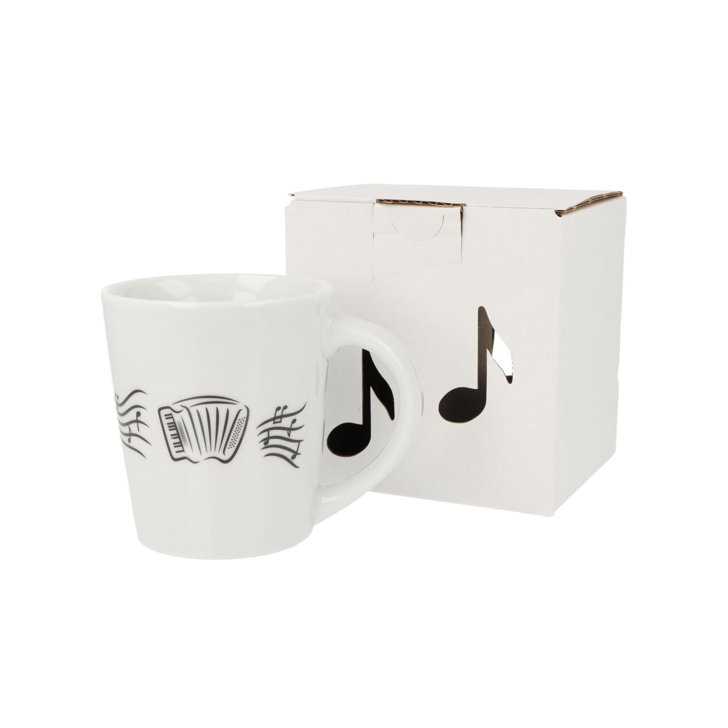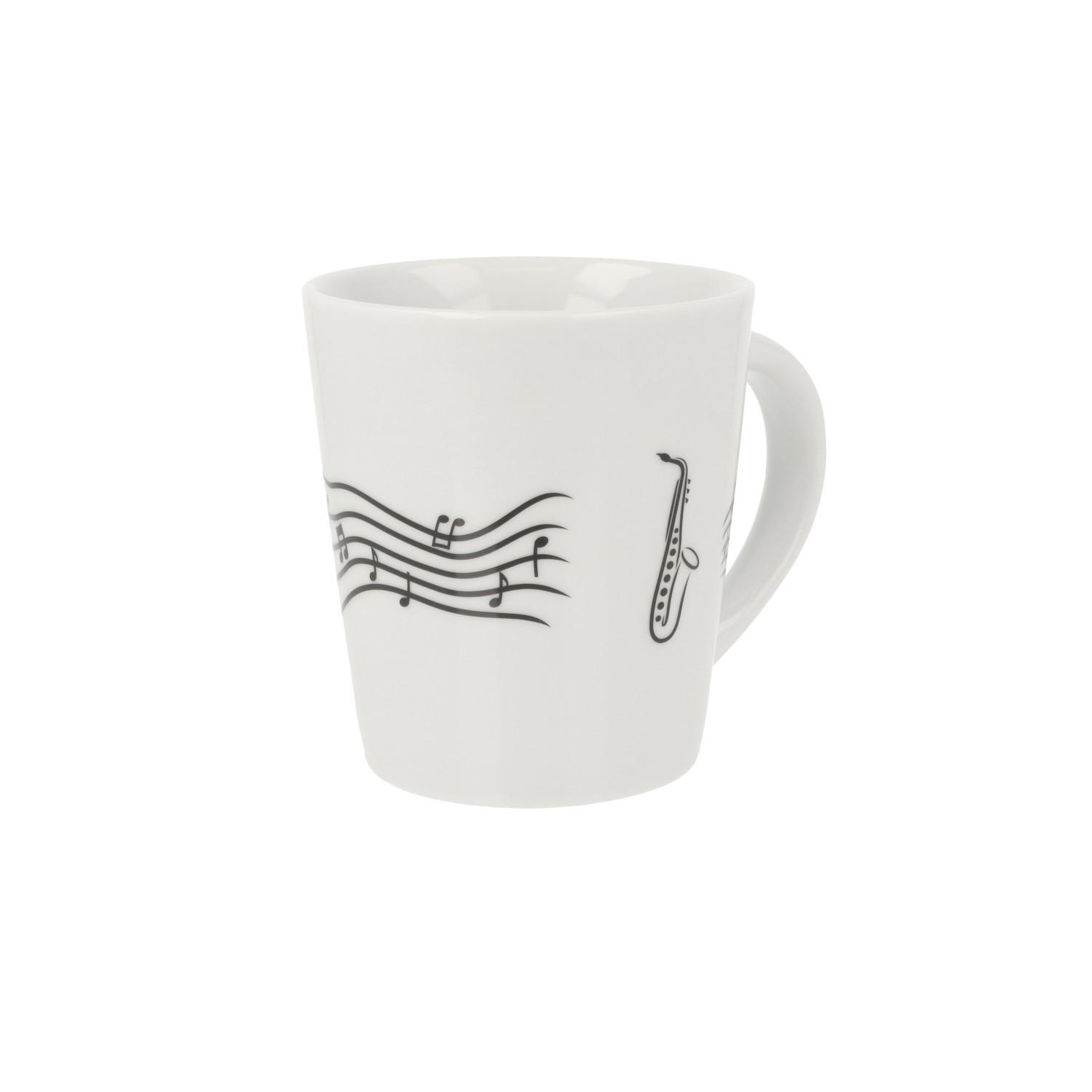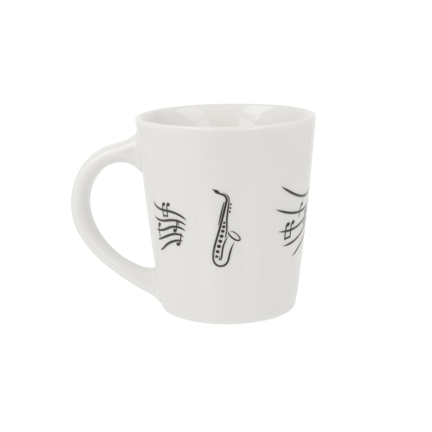 Musik-Henkelbecher mit Notenlinien und diversen Instrumenten