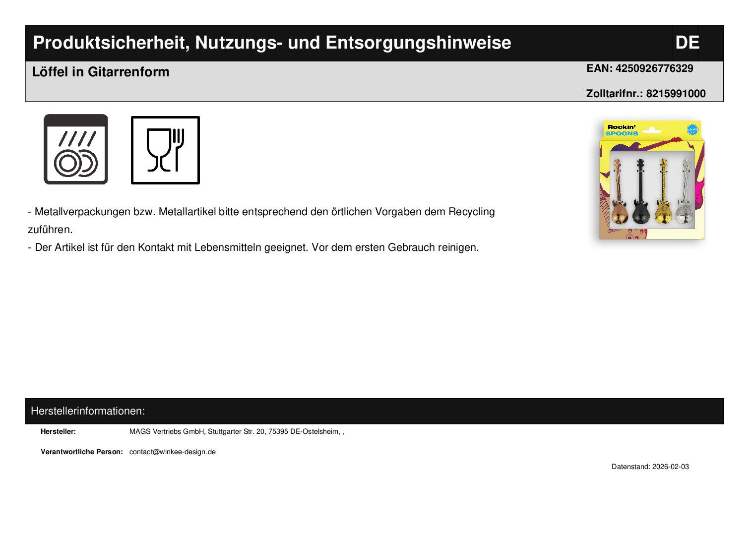 witzige Idee für Musiker: als Gitarre / Bass geformte Löffel aus Edelstahl