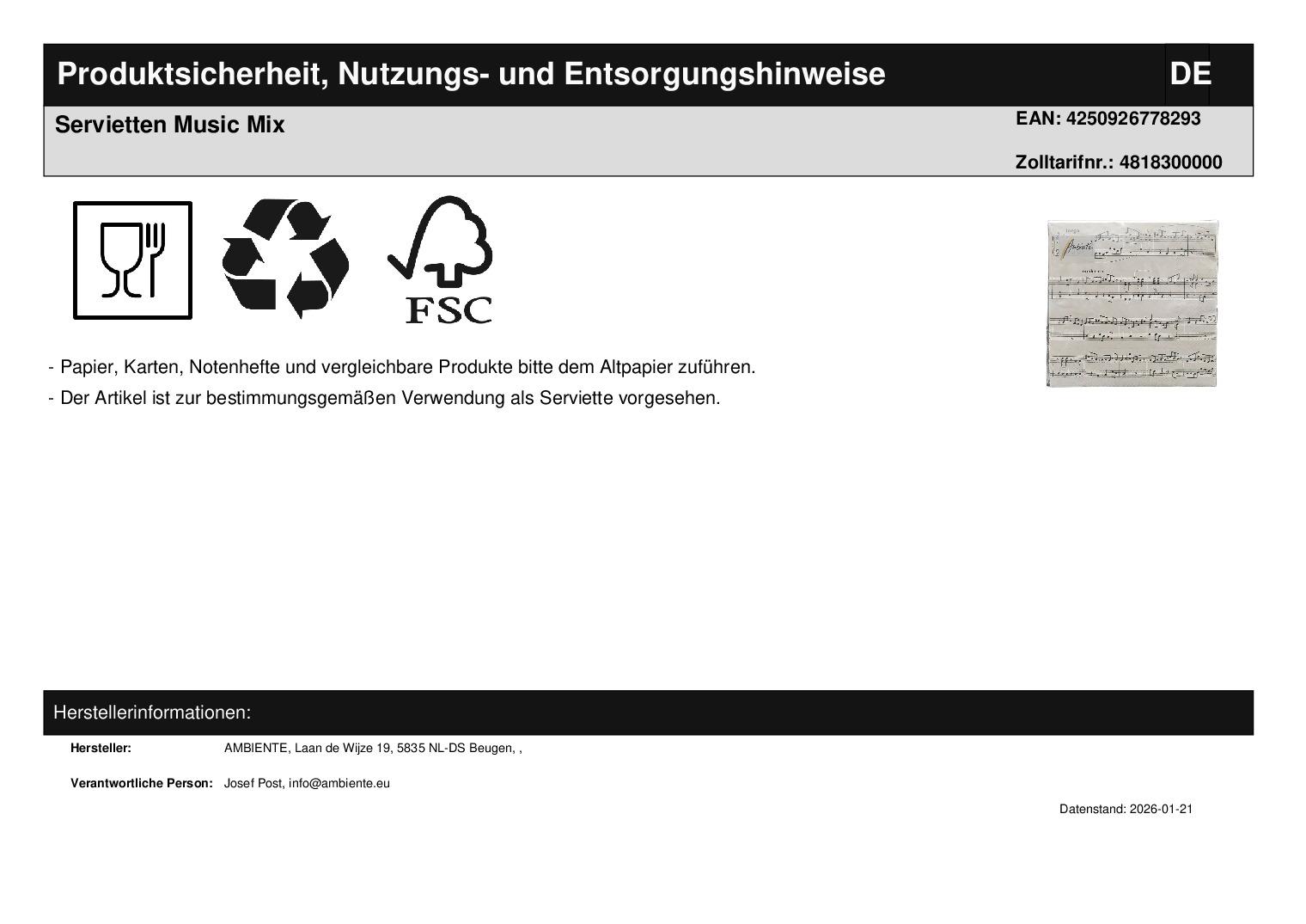 | Titel | Servietten Music Mix |
