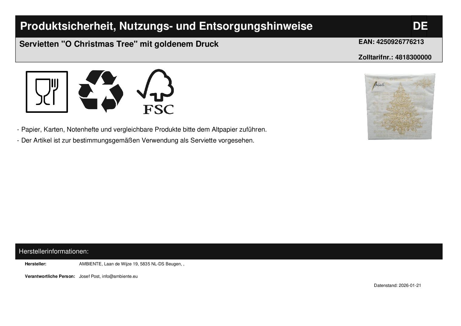 | Titel | Servietten "O Christmas Tree" mit goldenem Druck |