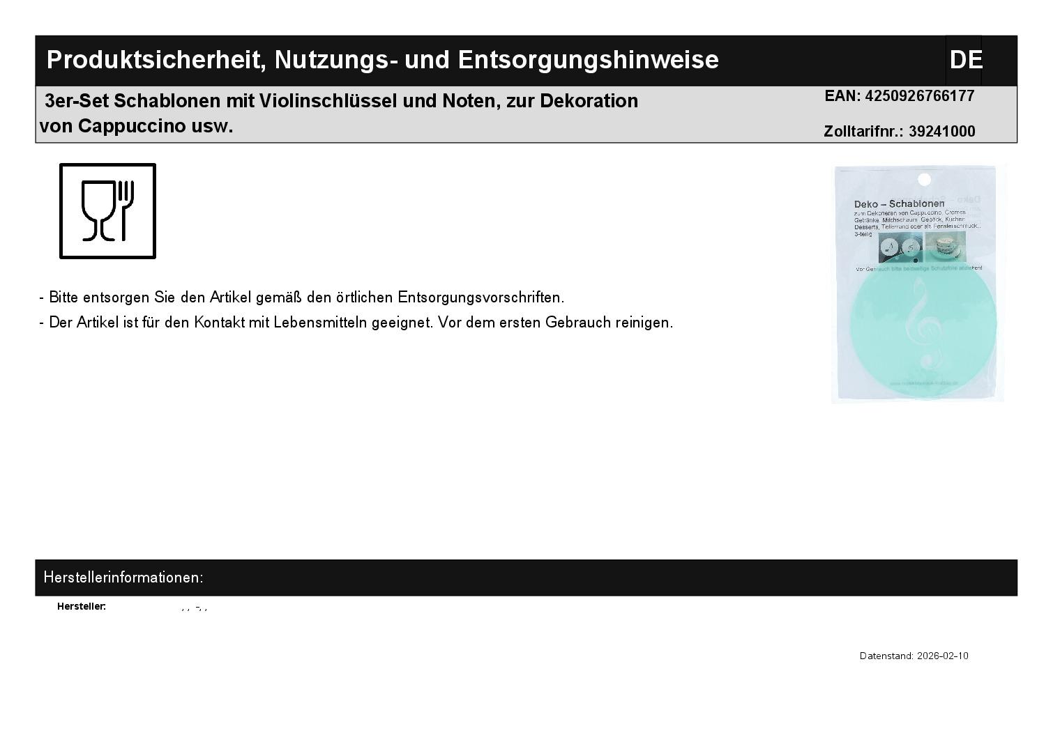 | Titel | 3er-Set Schablonen mit Violinschlüssel und Noten, zur Dekoration von Cappuccino usw. |