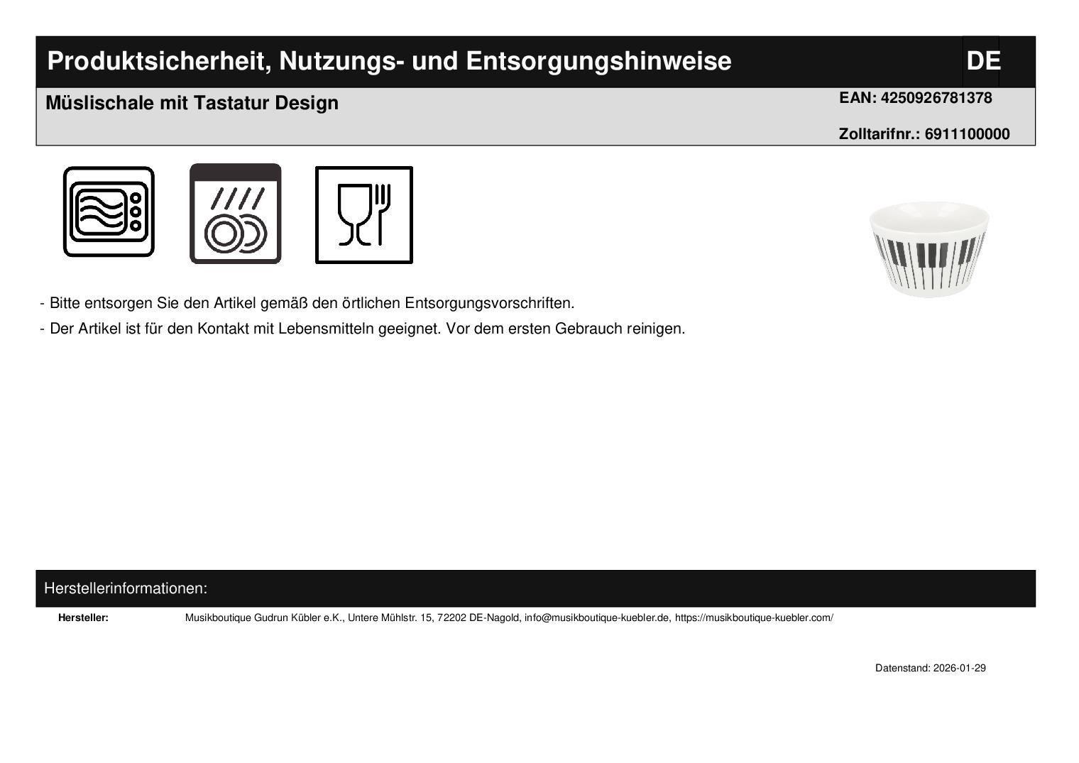 Musiker Müslischale in weiß mit schwarzem Tastaturdruck