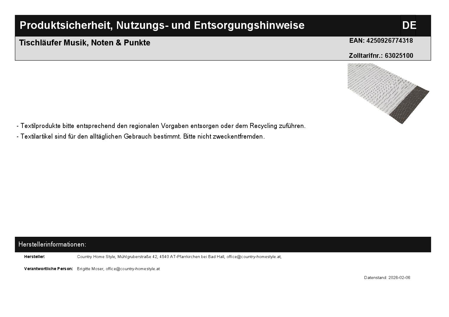 | Titel | Tischläufer Musik, Noten & Punkte |