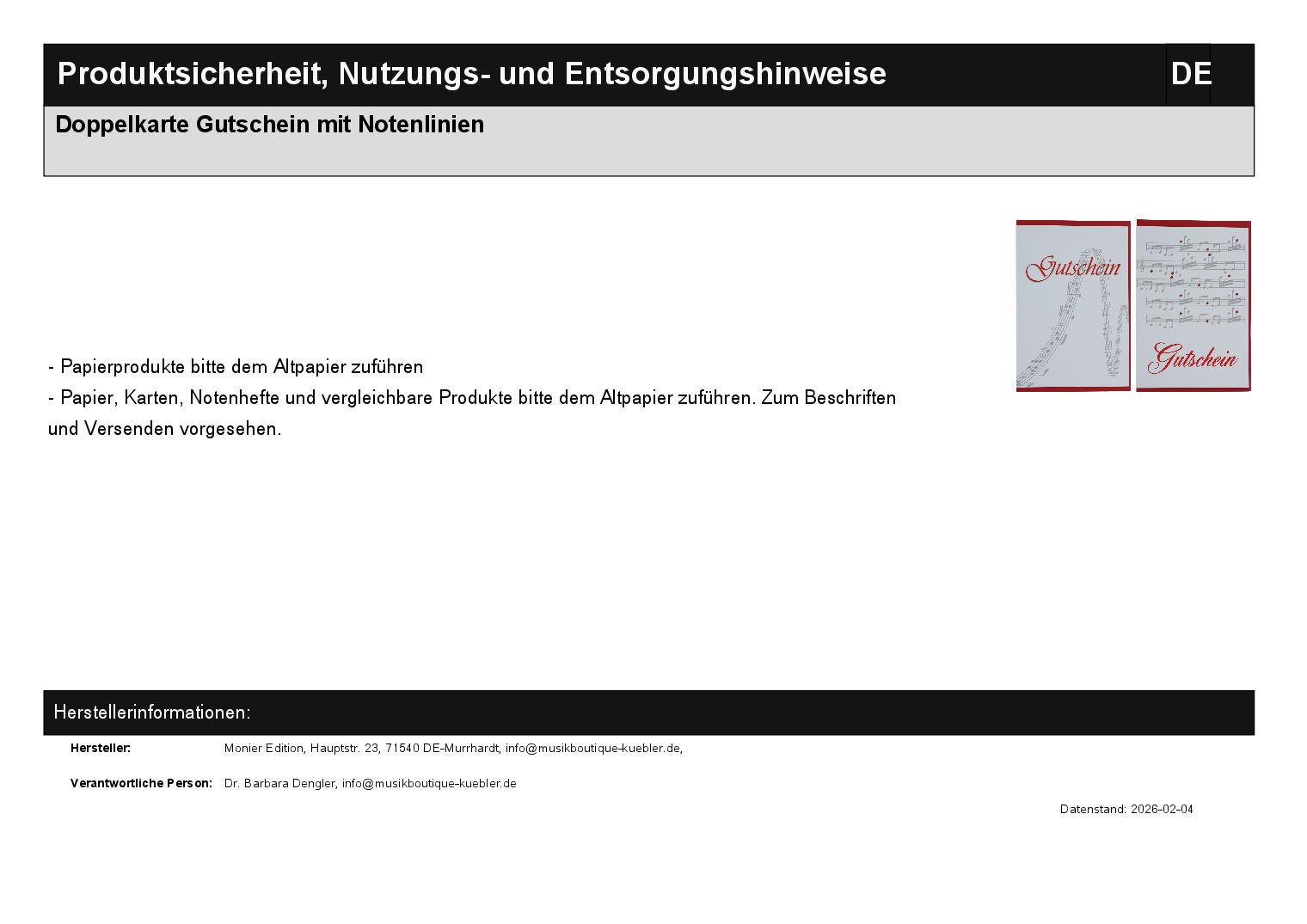 | Titel | Doppelkarte Gutschein mit Notenlinien |