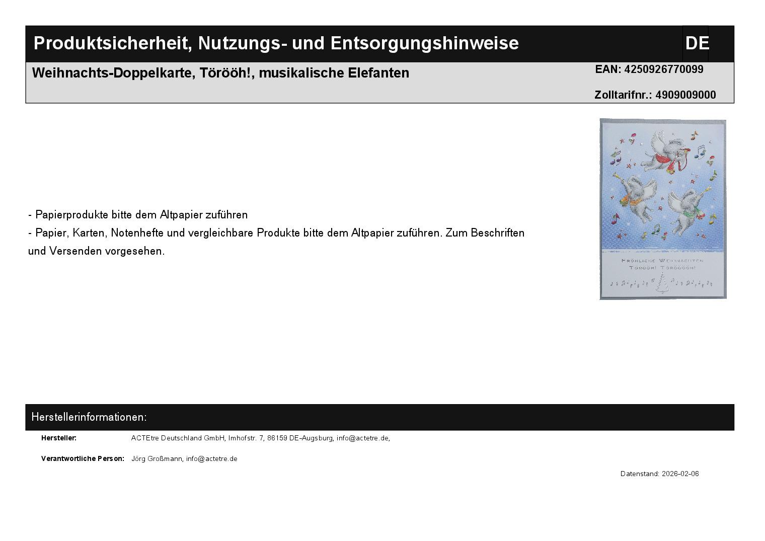 | Titel | Weihnachts-Doppelkarte, Törööh!, musikalische Elefanten |