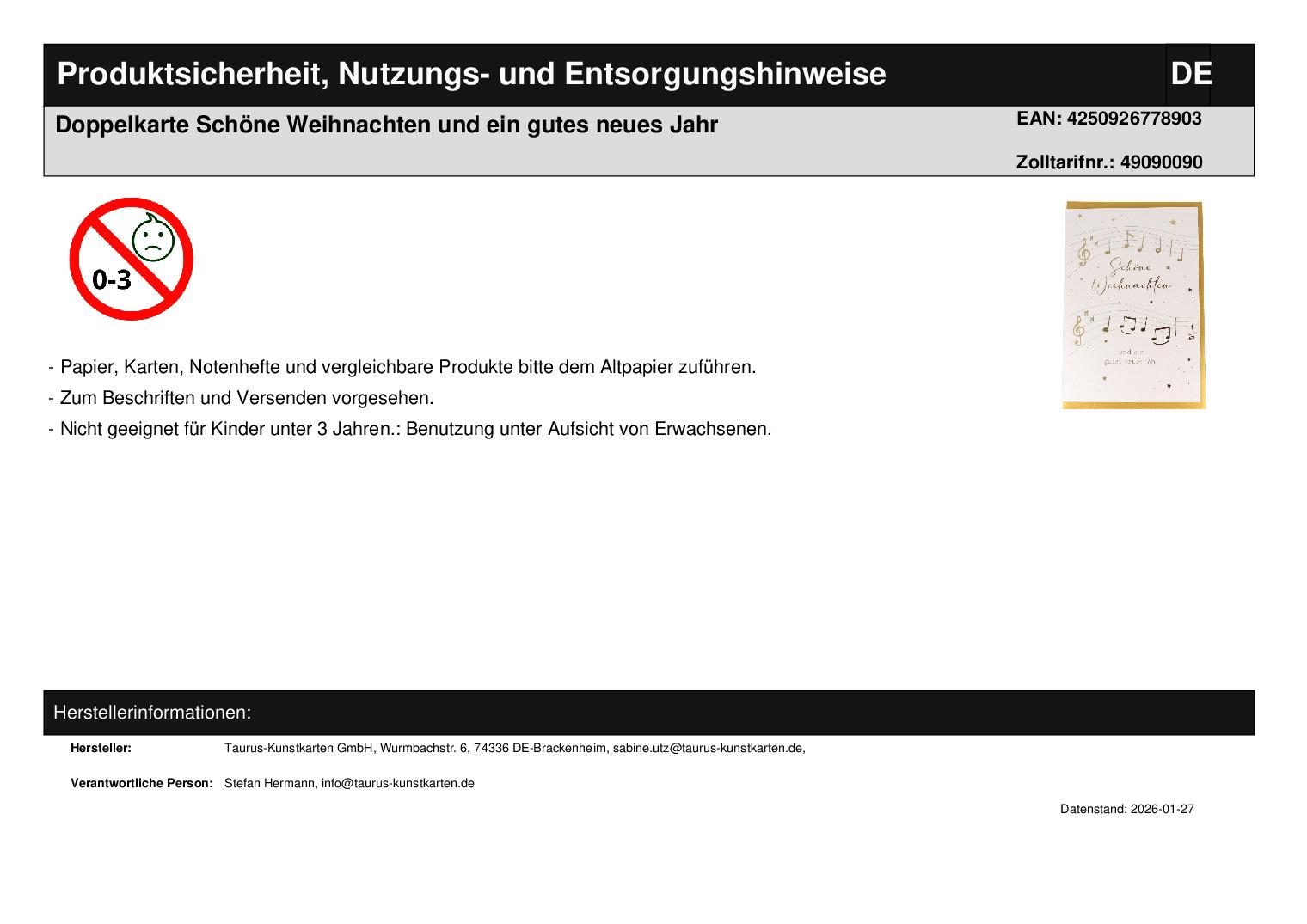 | Hersteller / Marke | Taurus-Kunstkarten GmbH |