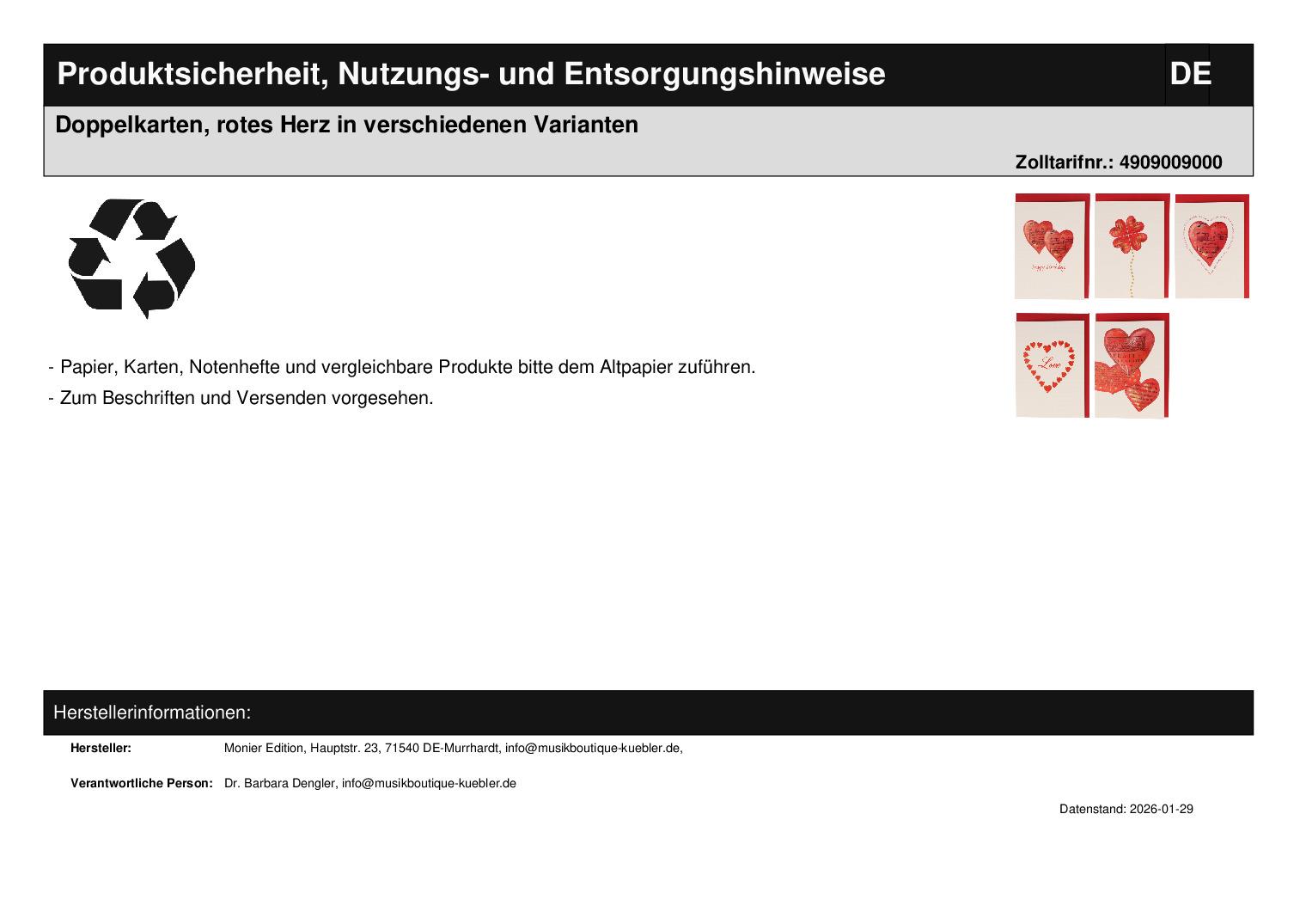 | Titel | Doppelkarten, rotes Herz in verschiedenen Varianten |