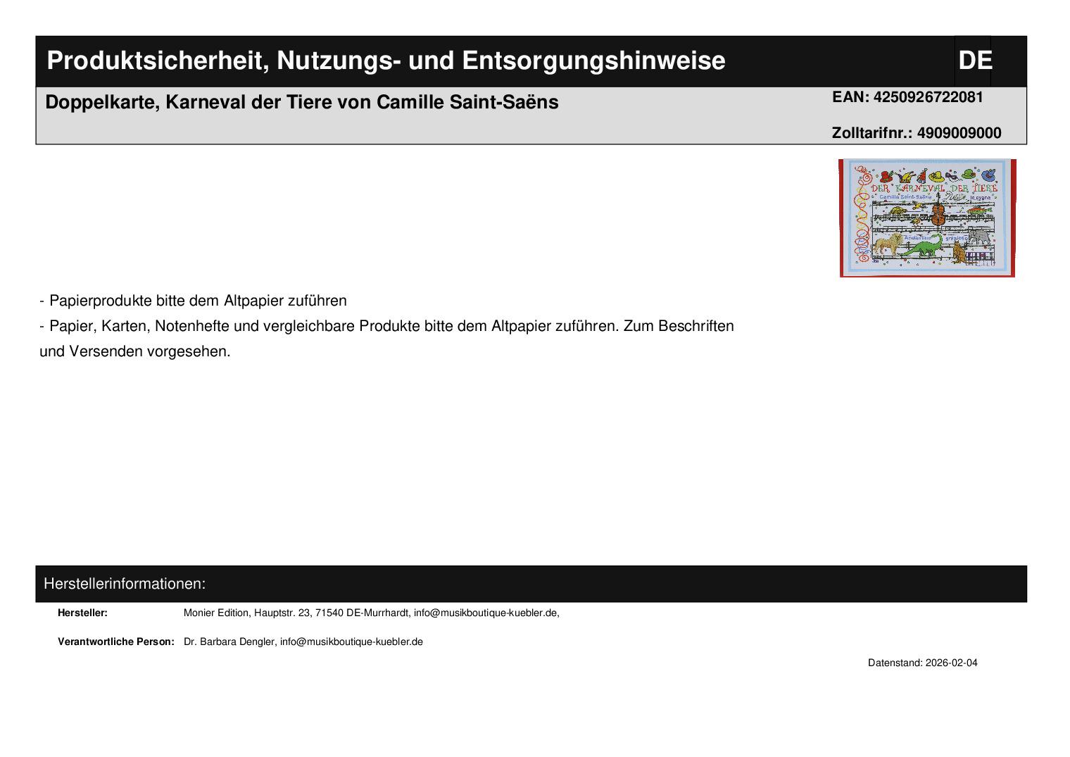 | Titel | Doppelkarte, Karneval der Tiere von Camille Saint-Saëns |