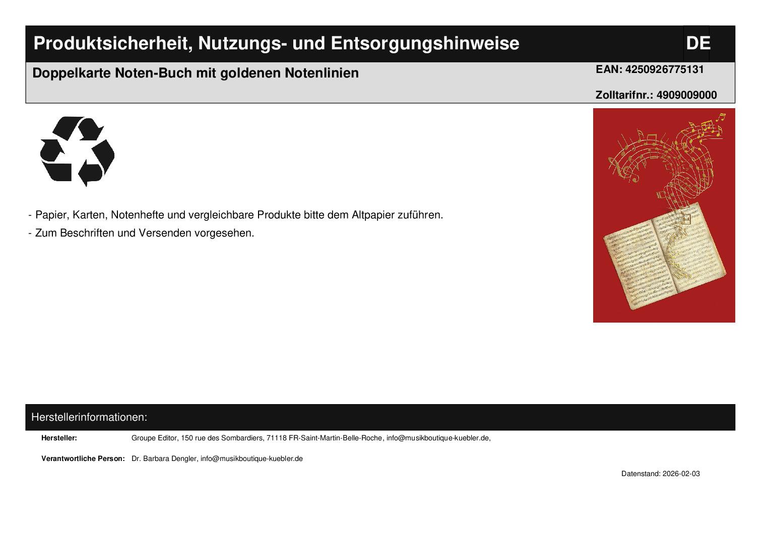 | Titel | Doppelkarte Noten-Buch mit goldenen Notenlinien |