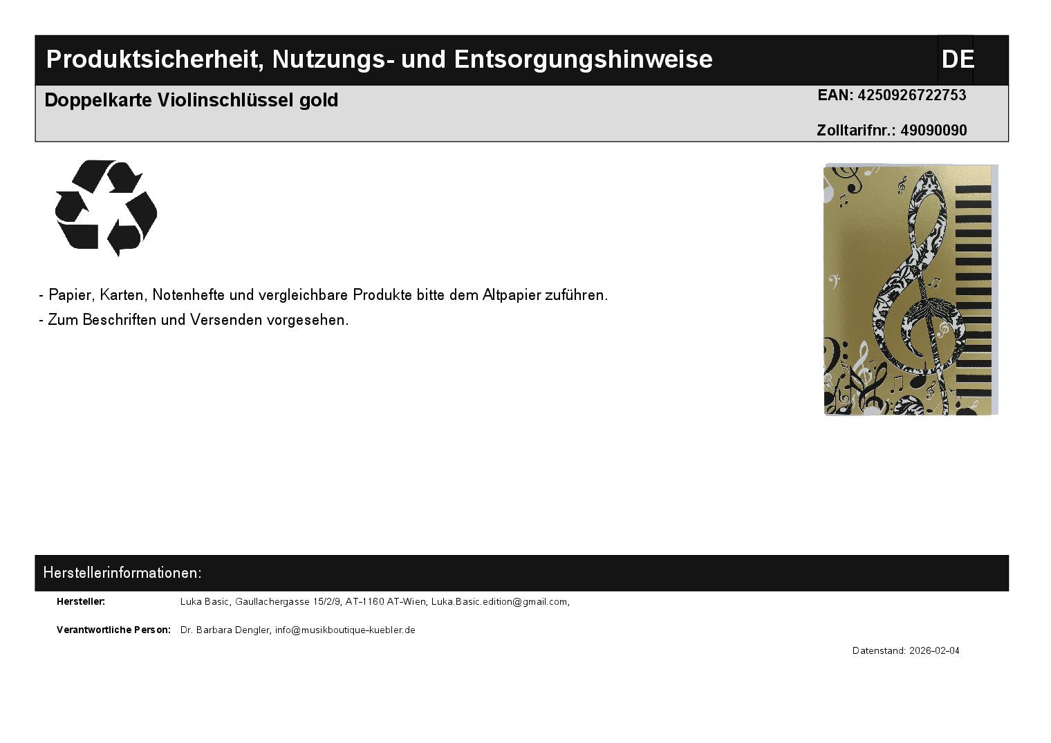 | Titel | Doppelkarte Violinschlüssel gold |