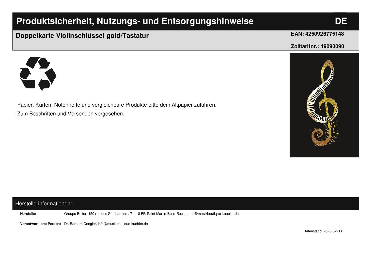 | Titel | Doppelkarte Violinschlüssel gold/Tastatur |