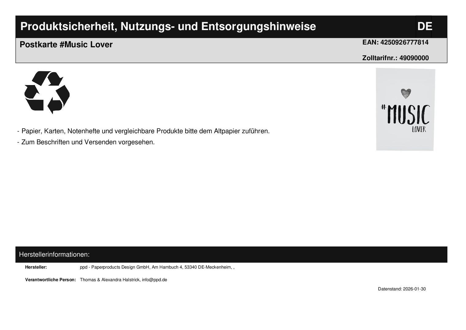 | Titel | Postkarte #Music Lover |