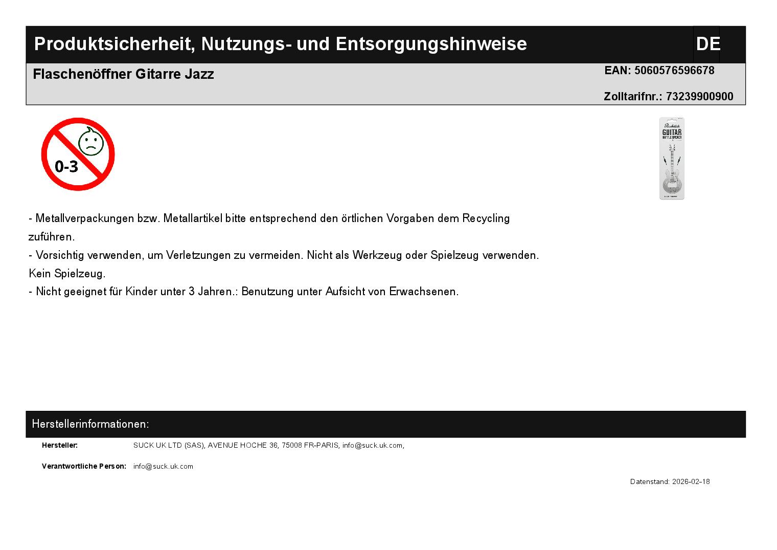 | Titel | Flaschenöffner Gitarre Jazz |