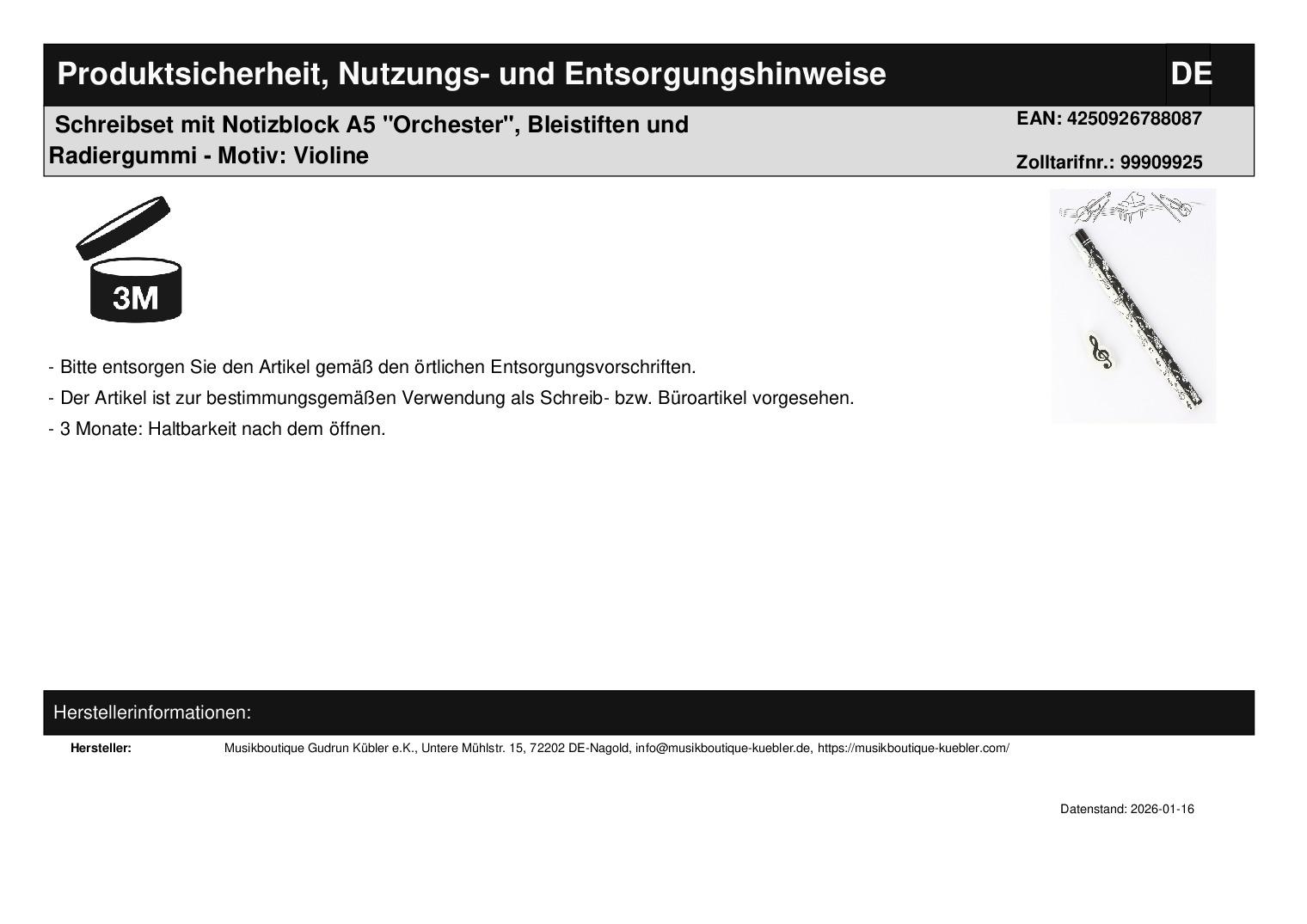 | Titel | Schreibset mit Notizblock A5 "Orchester", Bleistiften und Radiergummi |
