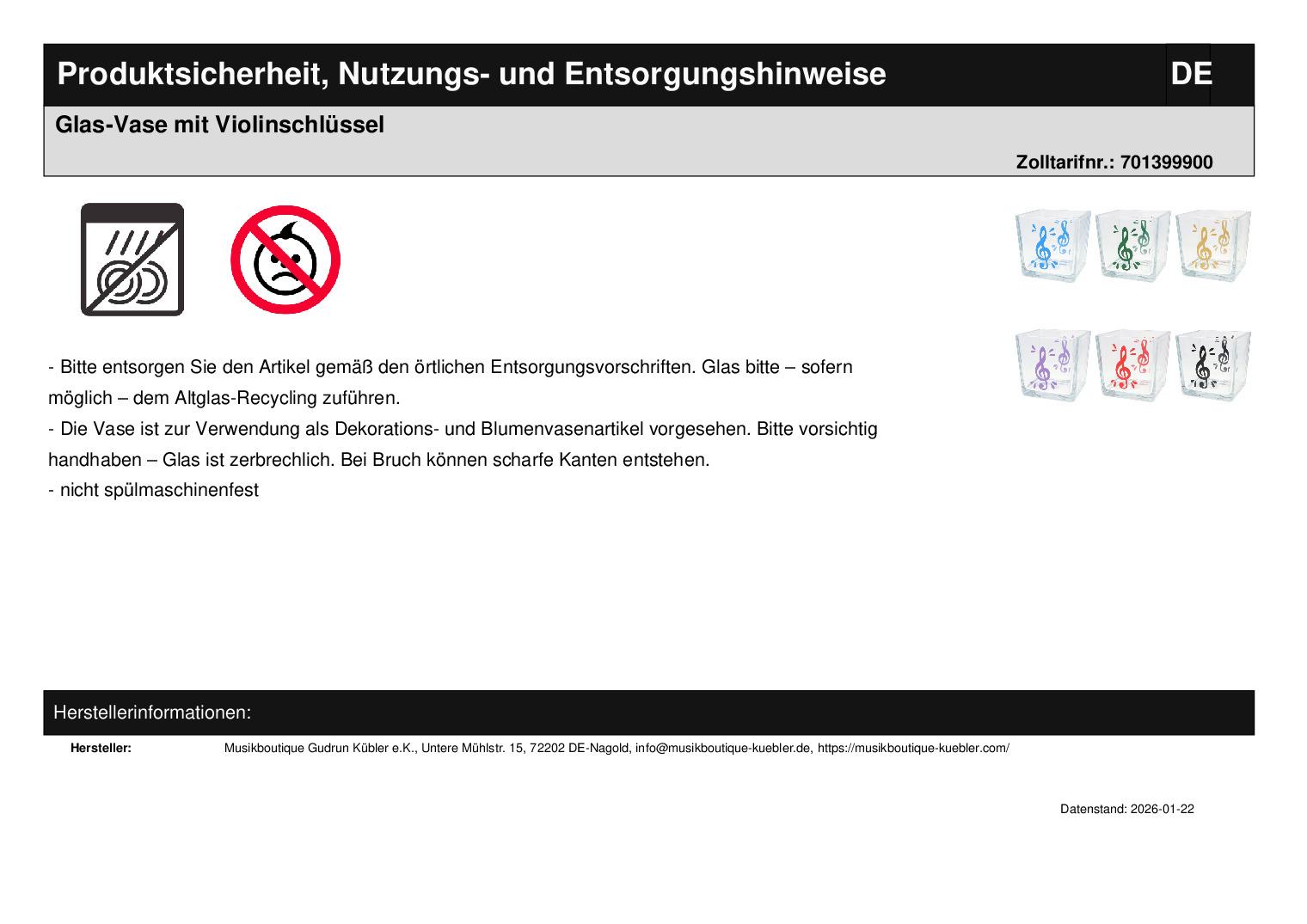 | Titel | Glas-Vase mit Violinschlüssel |