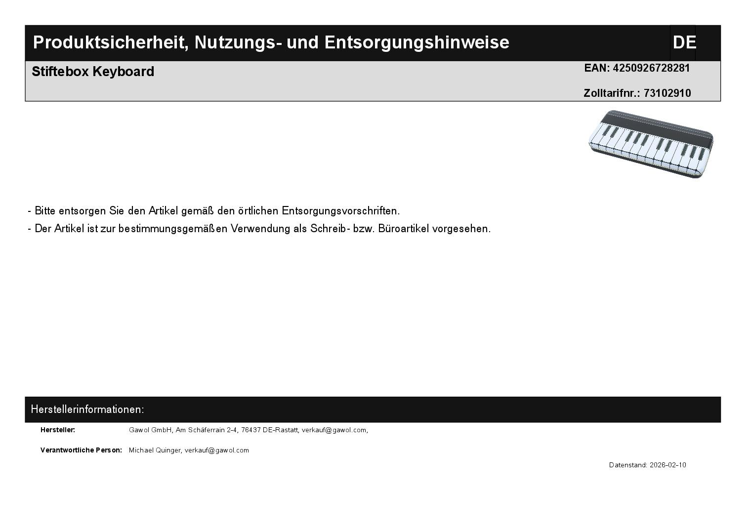 | Titel | Stiftebox Keyboard |