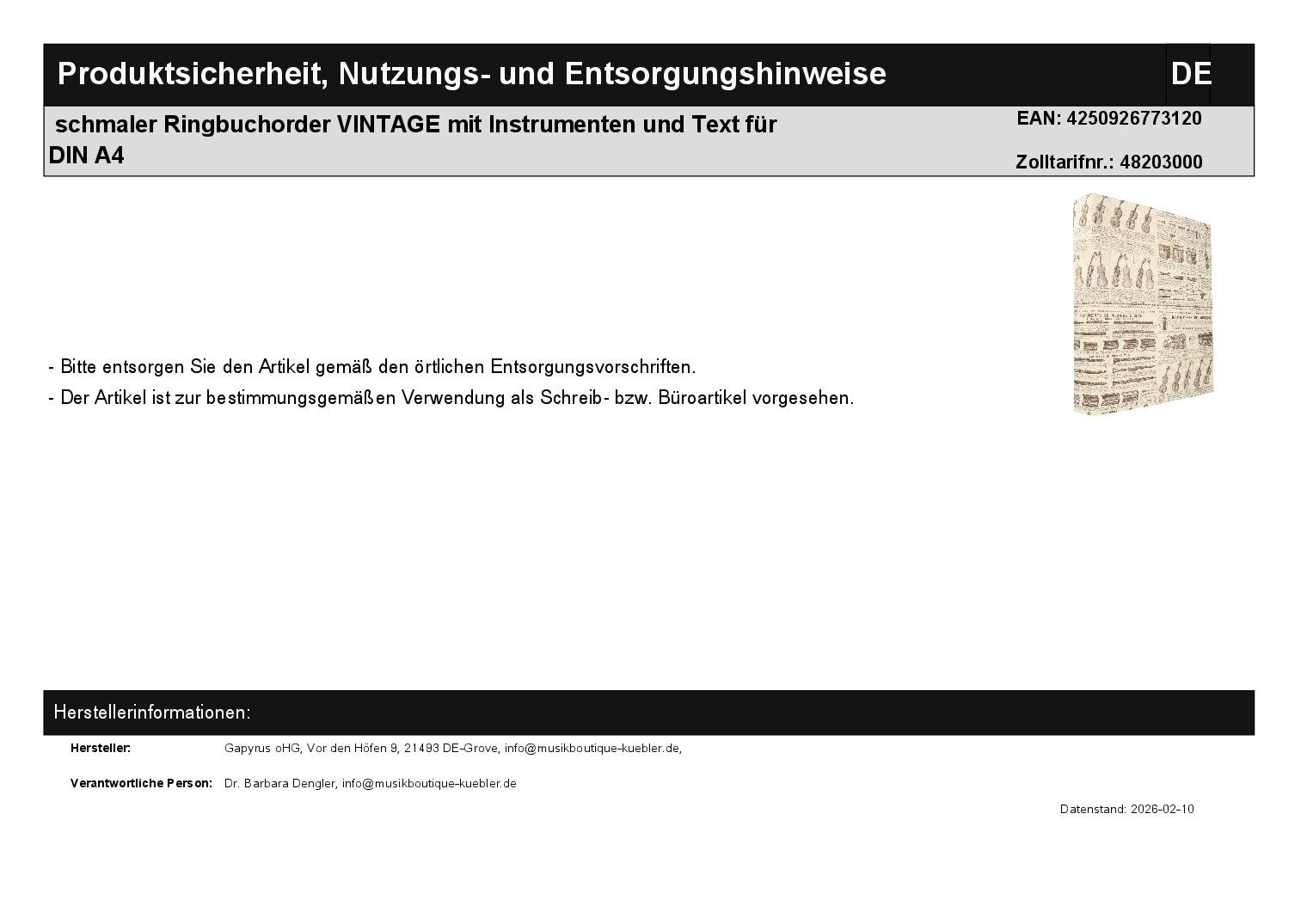 | Titel | schmaler Ringbuchorder VINTAGE mit Instrumenten und Text für DIN A4 |