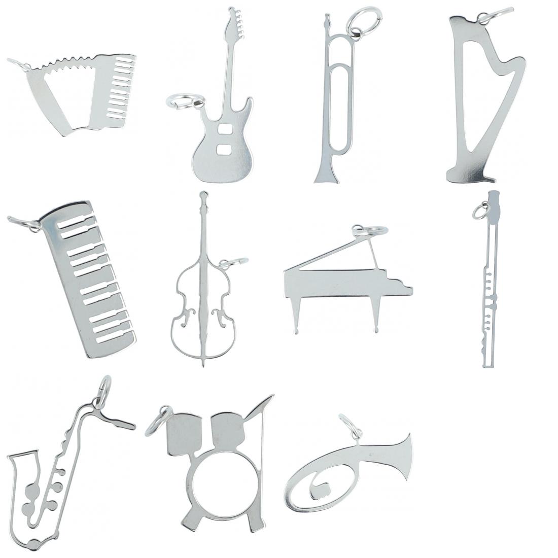 Anhänger aus Edelstahl mit diversen Instrumenten oder Notenschlüsseln