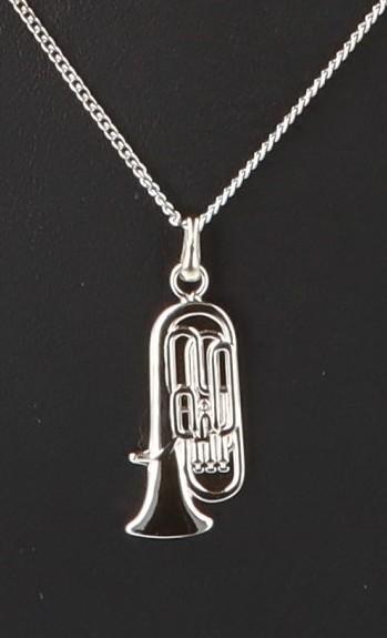 Tuba-Anhänger, mit Kette, versilbert oder vergoldet
