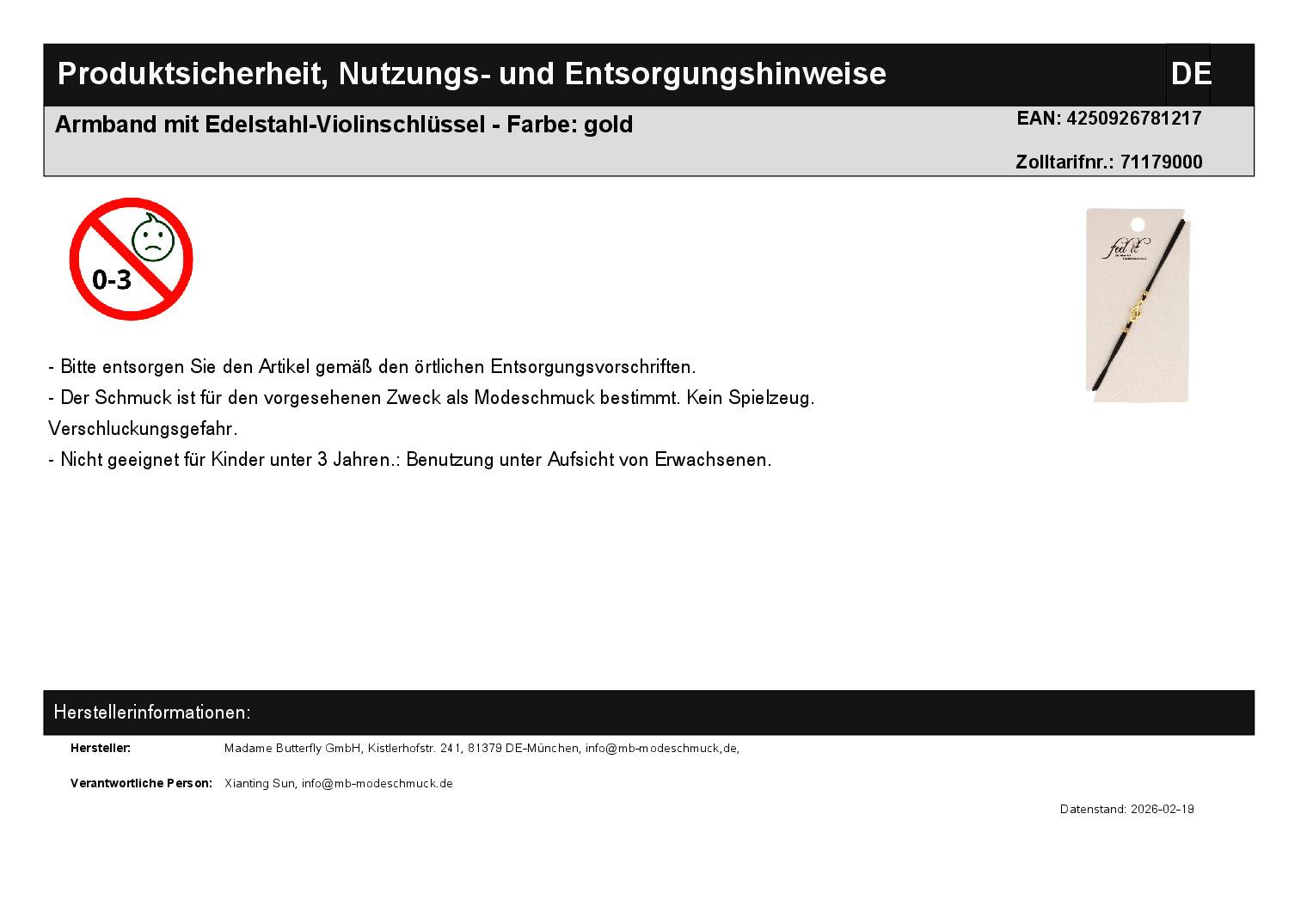 | Hersteller / Marke | Madame Butterfly GmbH |