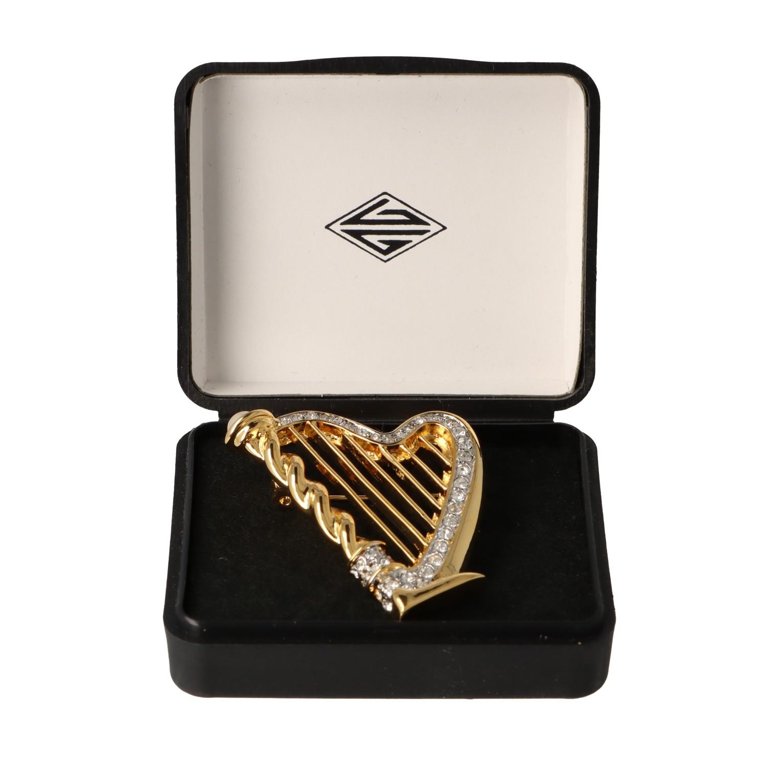 Titel | Brosche Harfe mit Schmucksteinen in Geschenkbox, Farbe silber oder silber matt |