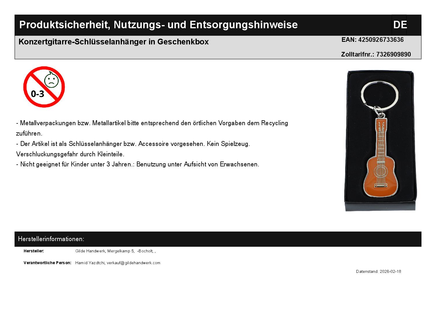 | Titel | Konzertgitarre-Schlüsselanhänger in Geschenkbox |