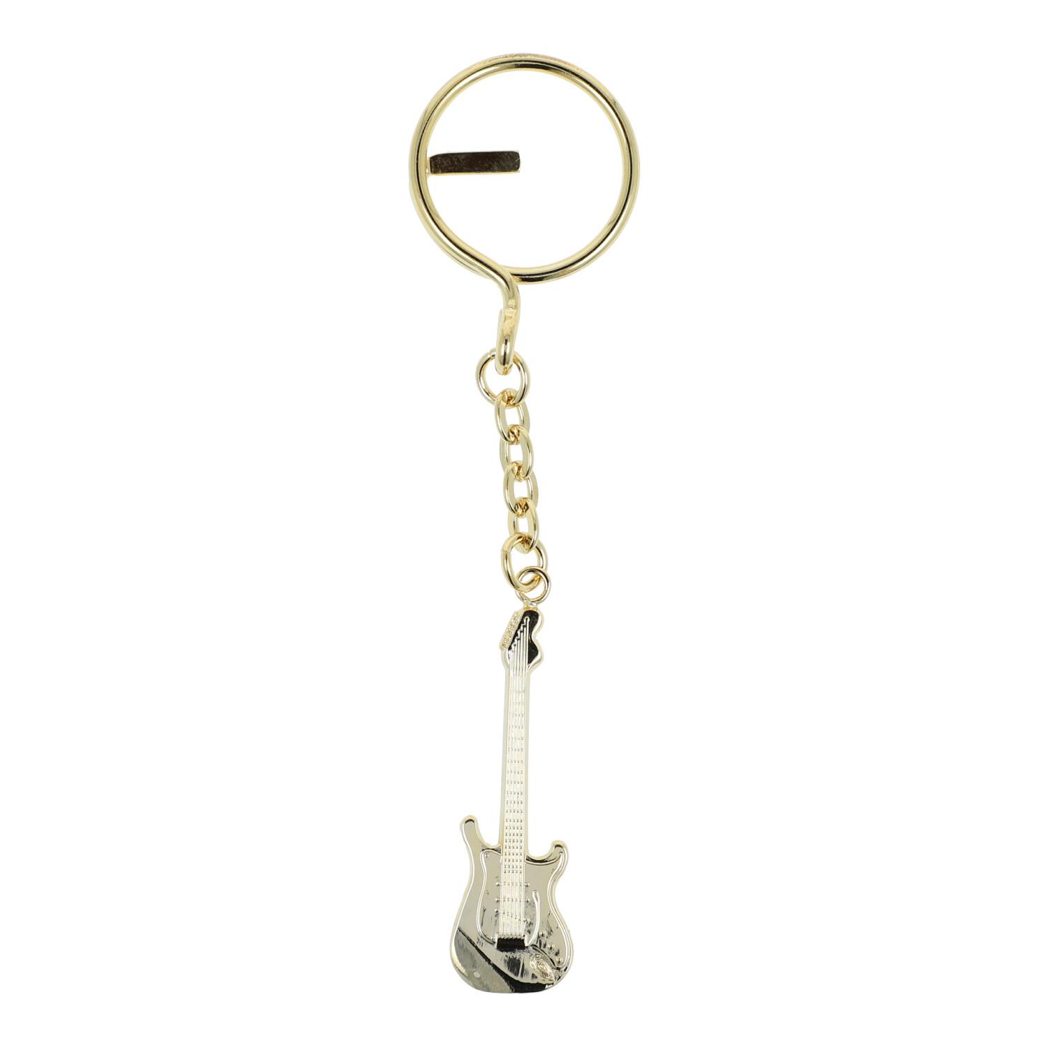 goldene, als Instrumente oder Violinschlüssel geformte Metall-Schlüsselanhänger - Design: E-Gitarre