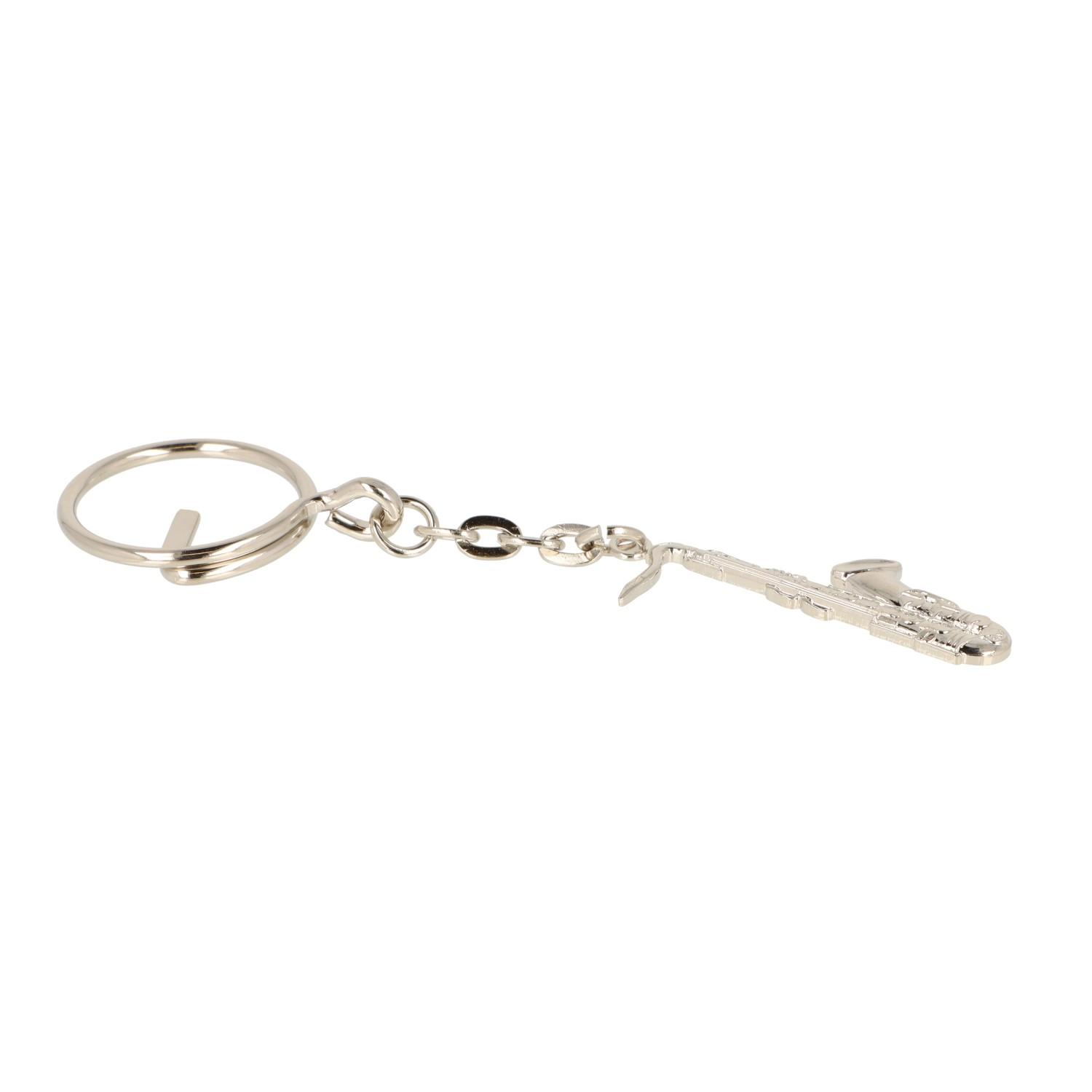 Titel | silberne, als Instrumente oder Violinschlüssel geformte Metall-Schlüsselanhänger |