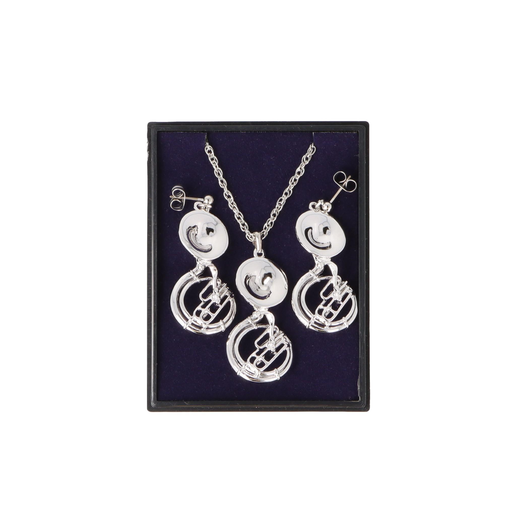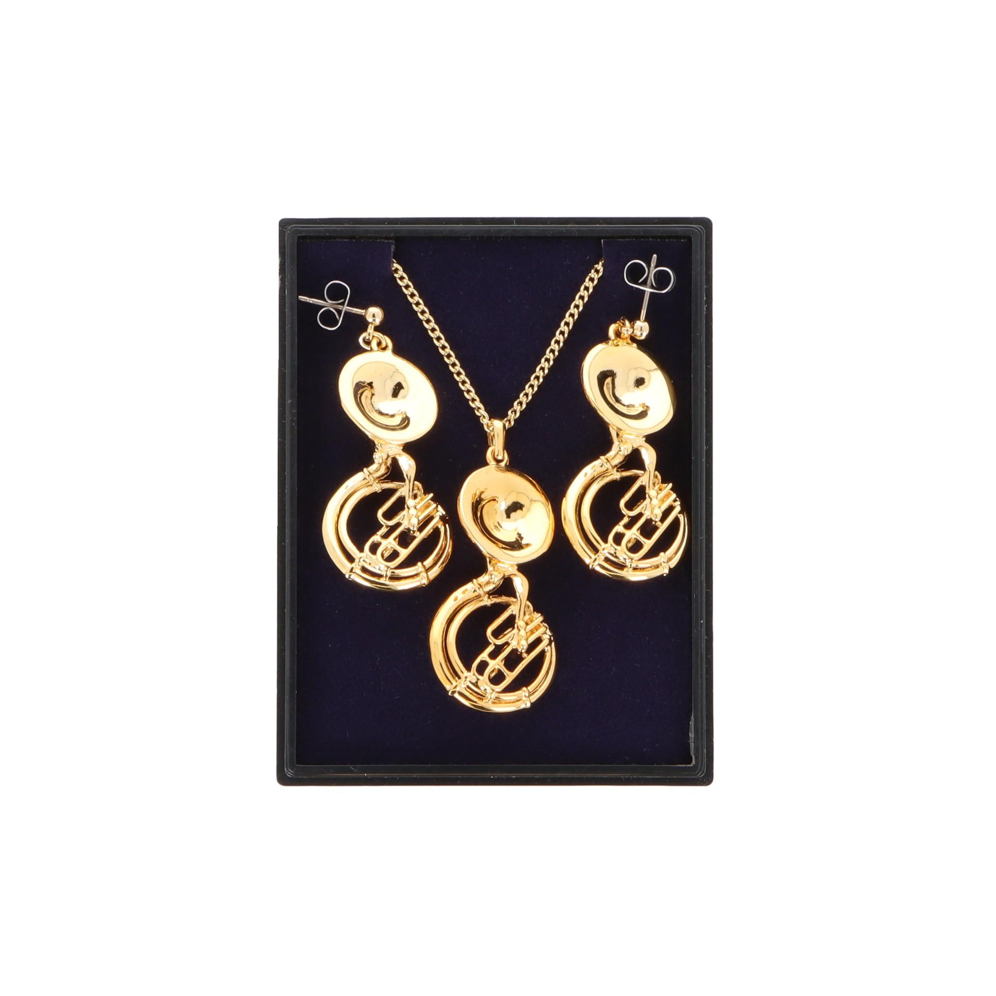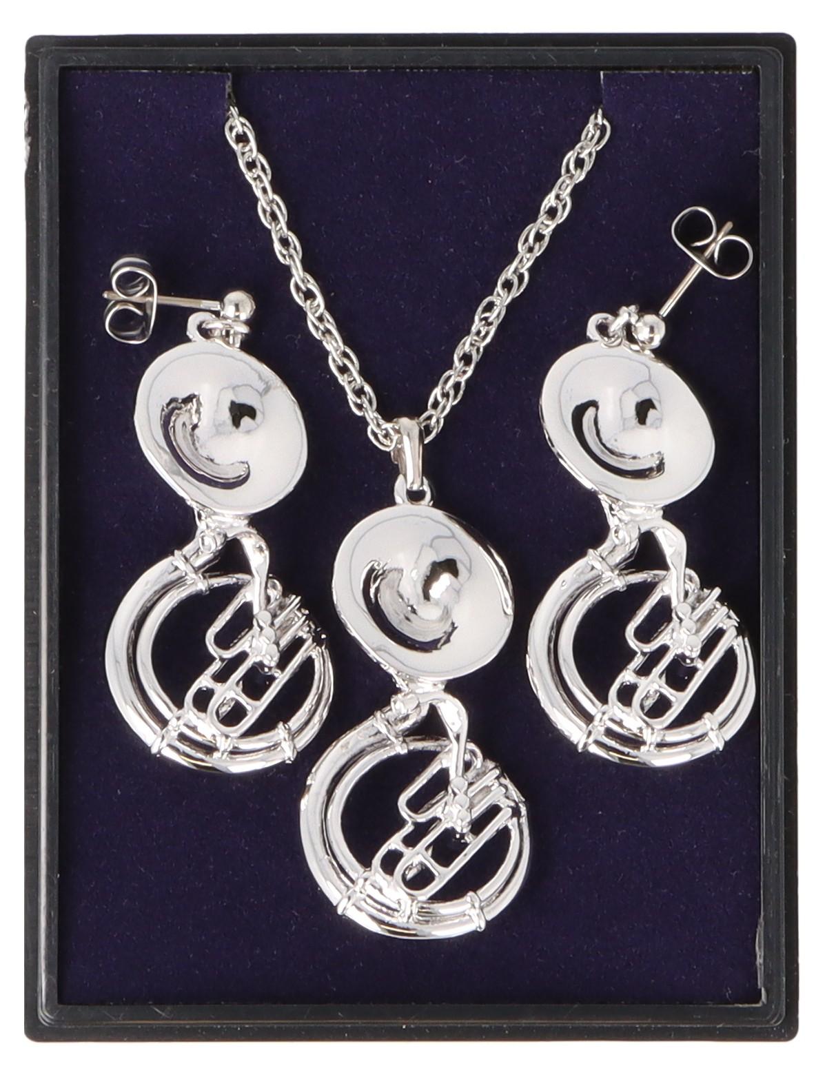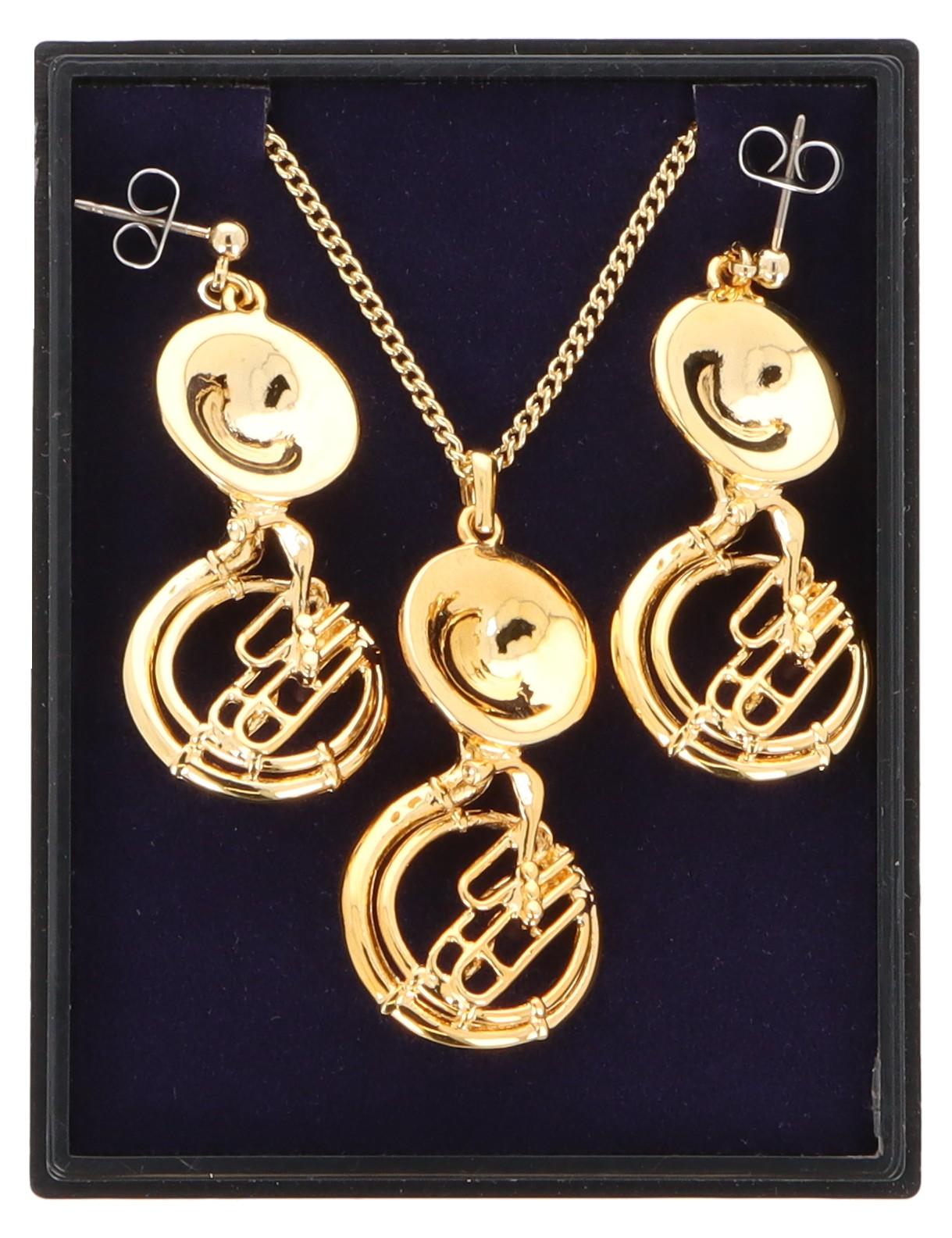 Sousaphon Ohrhänger und Anhänger mit Kette in Displaybox, versilbert oder vergoldet, Blasmusik