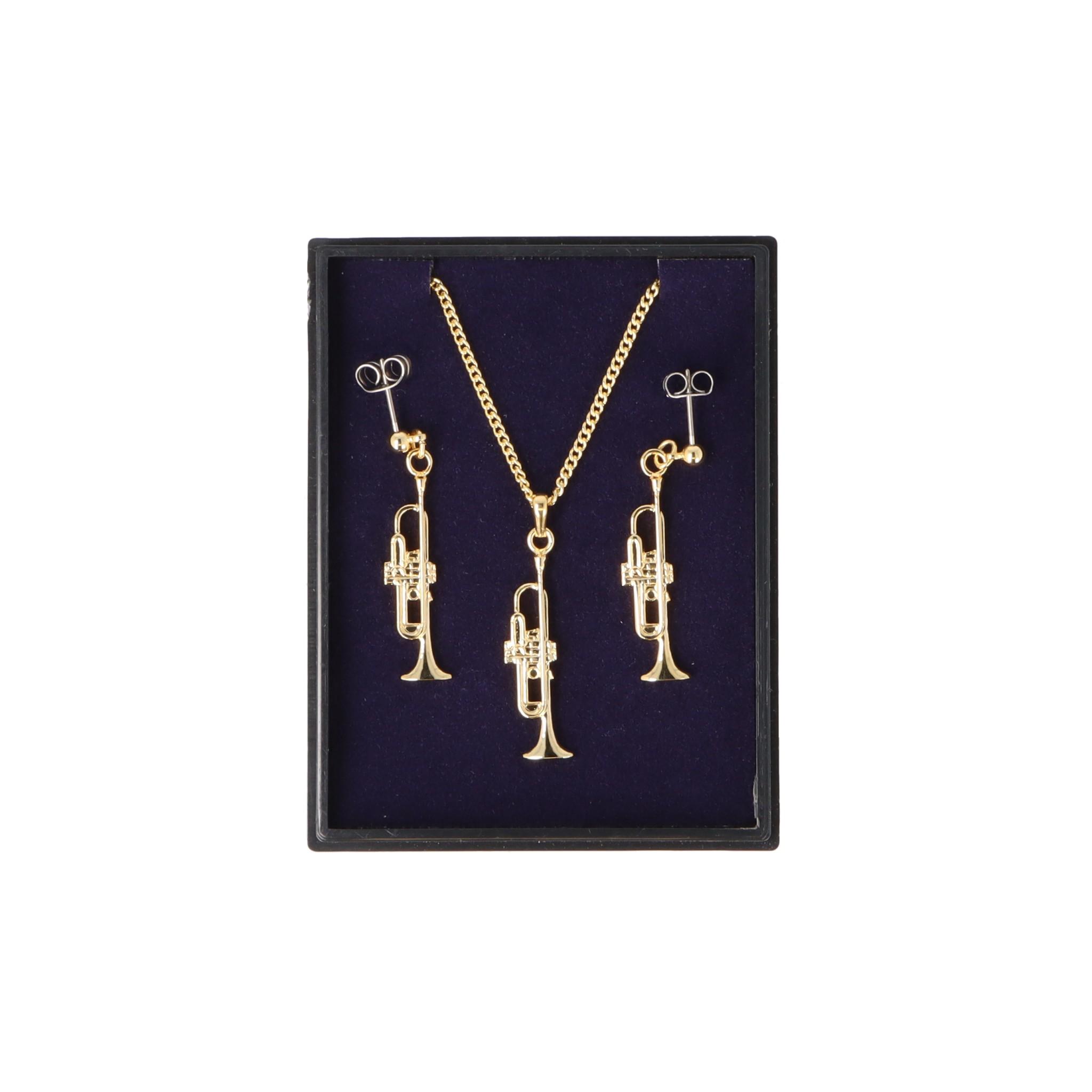 | Titel | Trompete Ohrhänger und Anhänger mit Kette in Displaybox, versilbert oder vergoldet, Blasmusik - Ausführung: vergoldet |