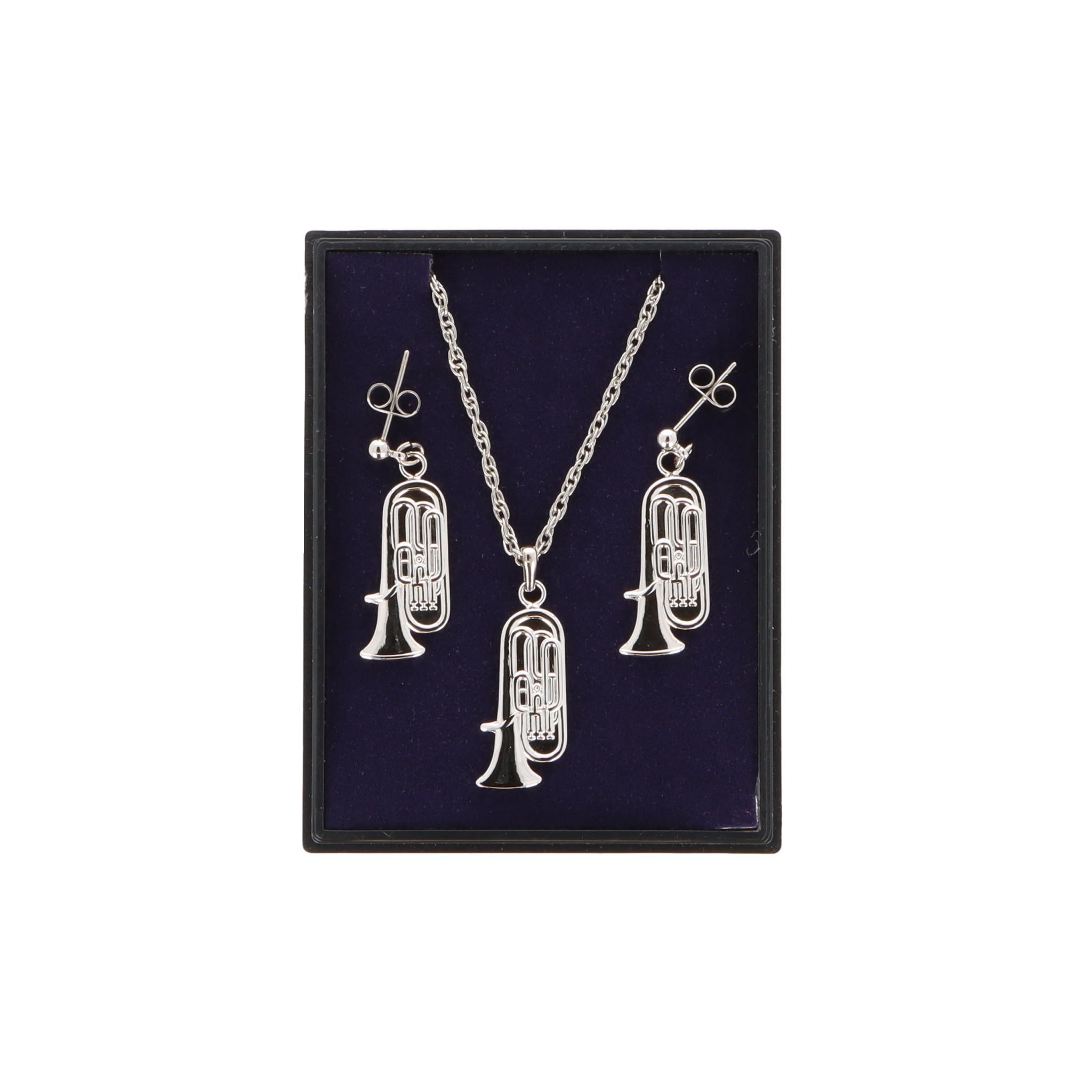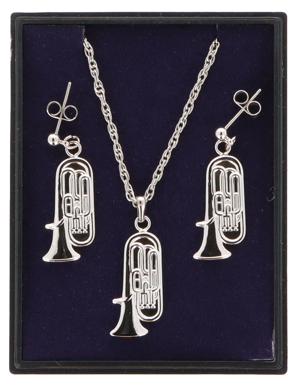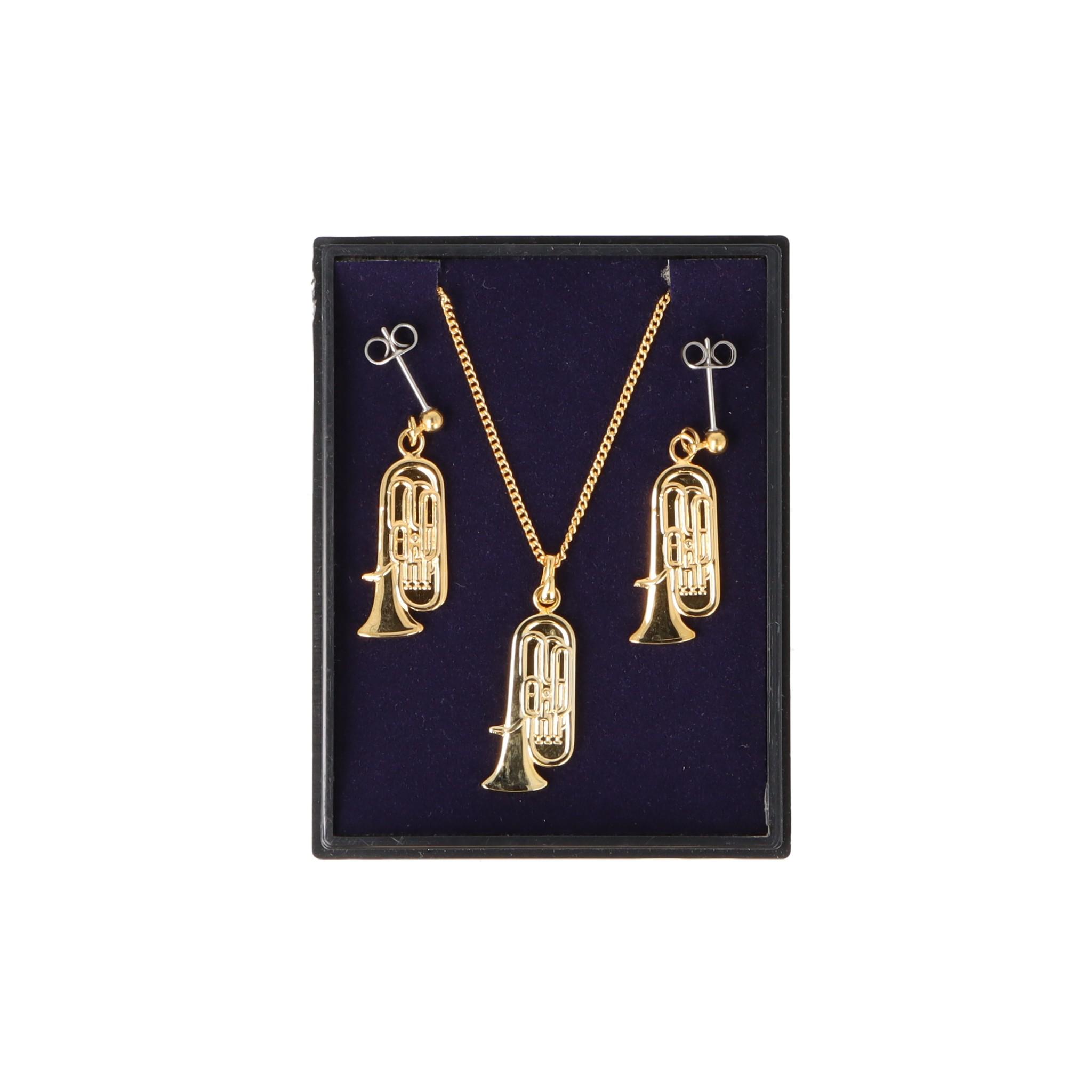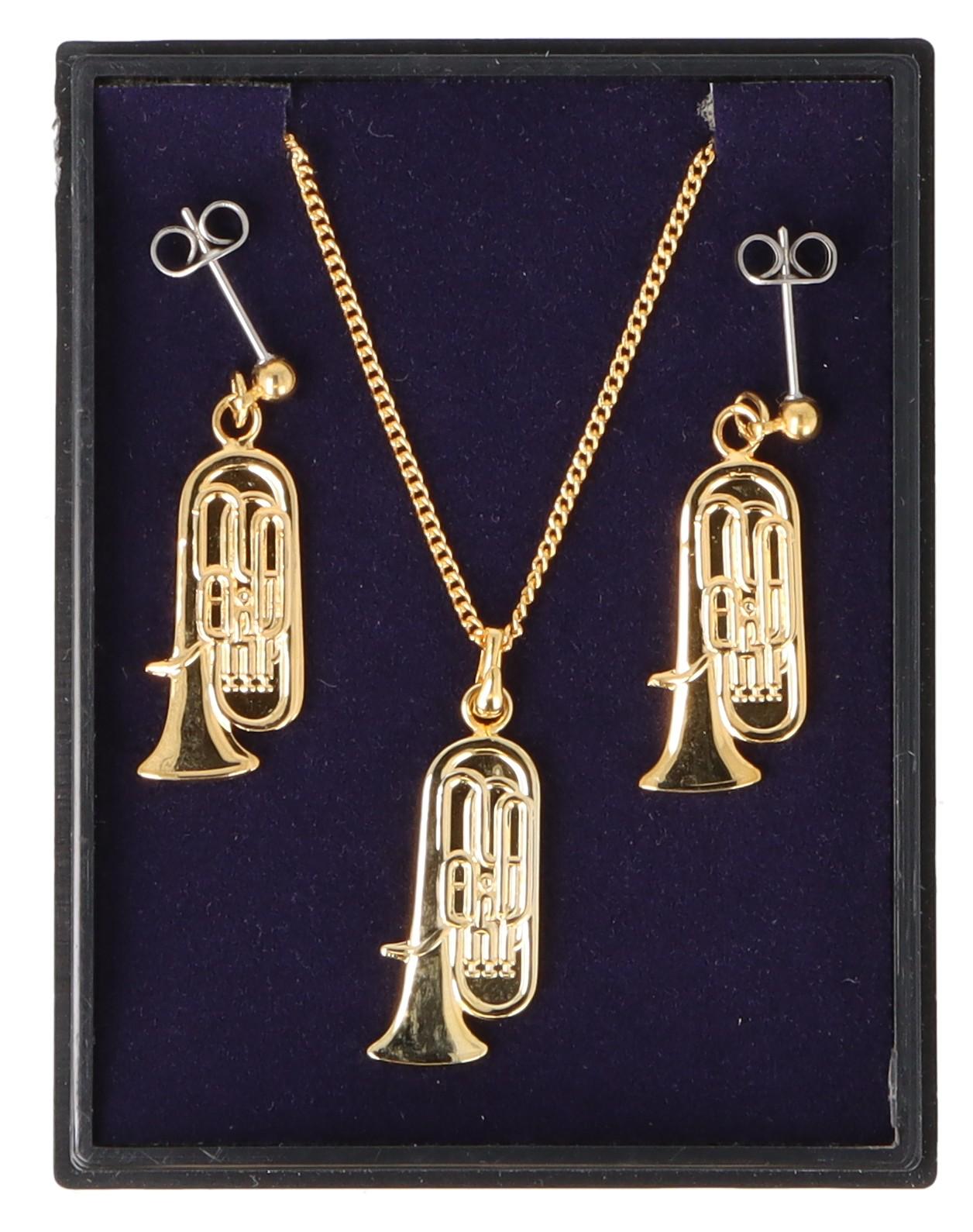 Tuba Ohrhänger und Anhänger mit Kette in Displaybox, versilbert oder vergoldet, Blasmusik