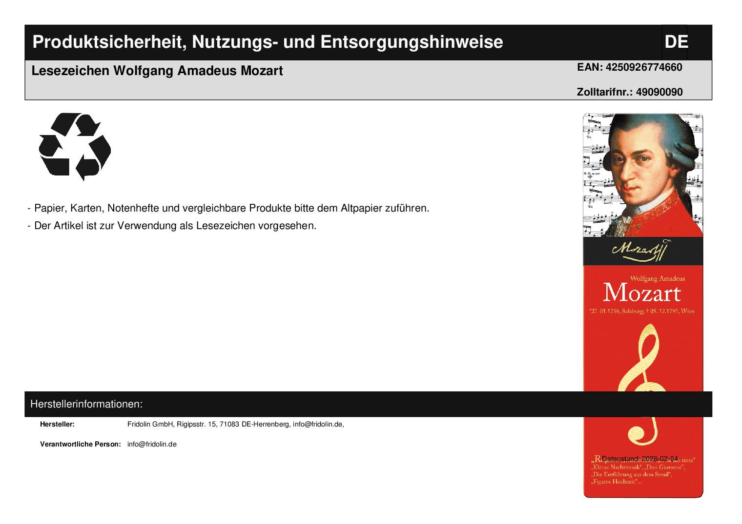 | Titel | Lesezeichen Wolfgang Amadeus Mozart |