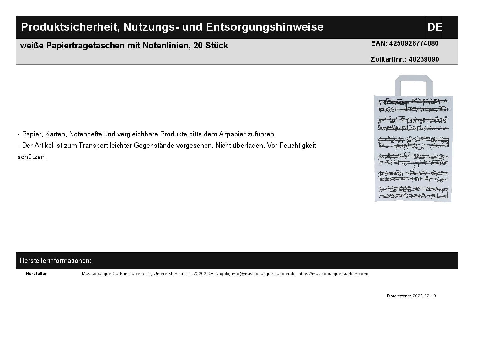 | Titel | weiße Papiertragetaschen mit Notenlinien, 20 Stück |