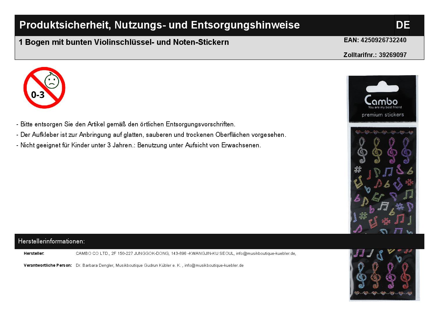 | Titel | 1 Bogen mit bunten Violinschlüssel- und Noten-Stickern |